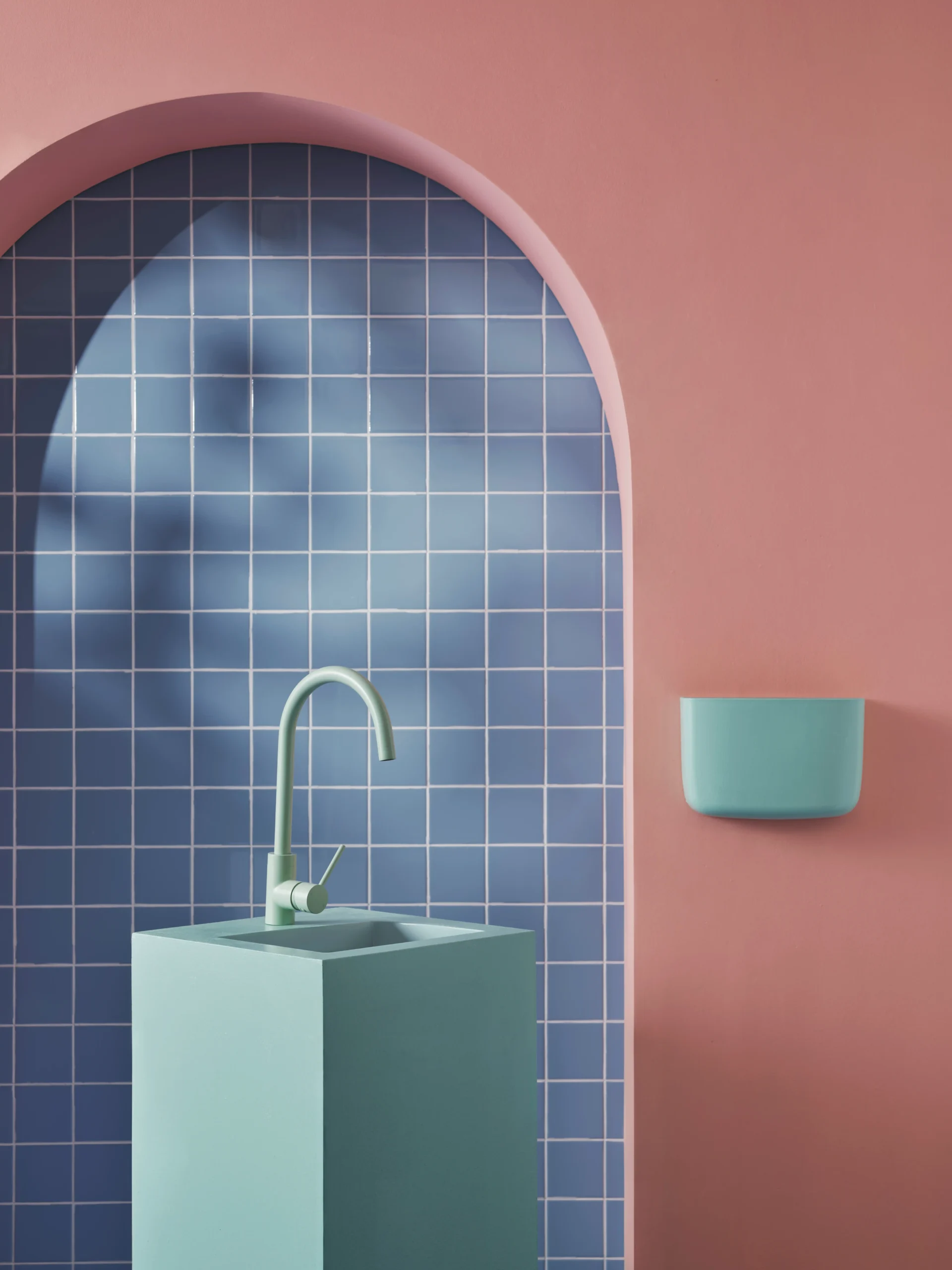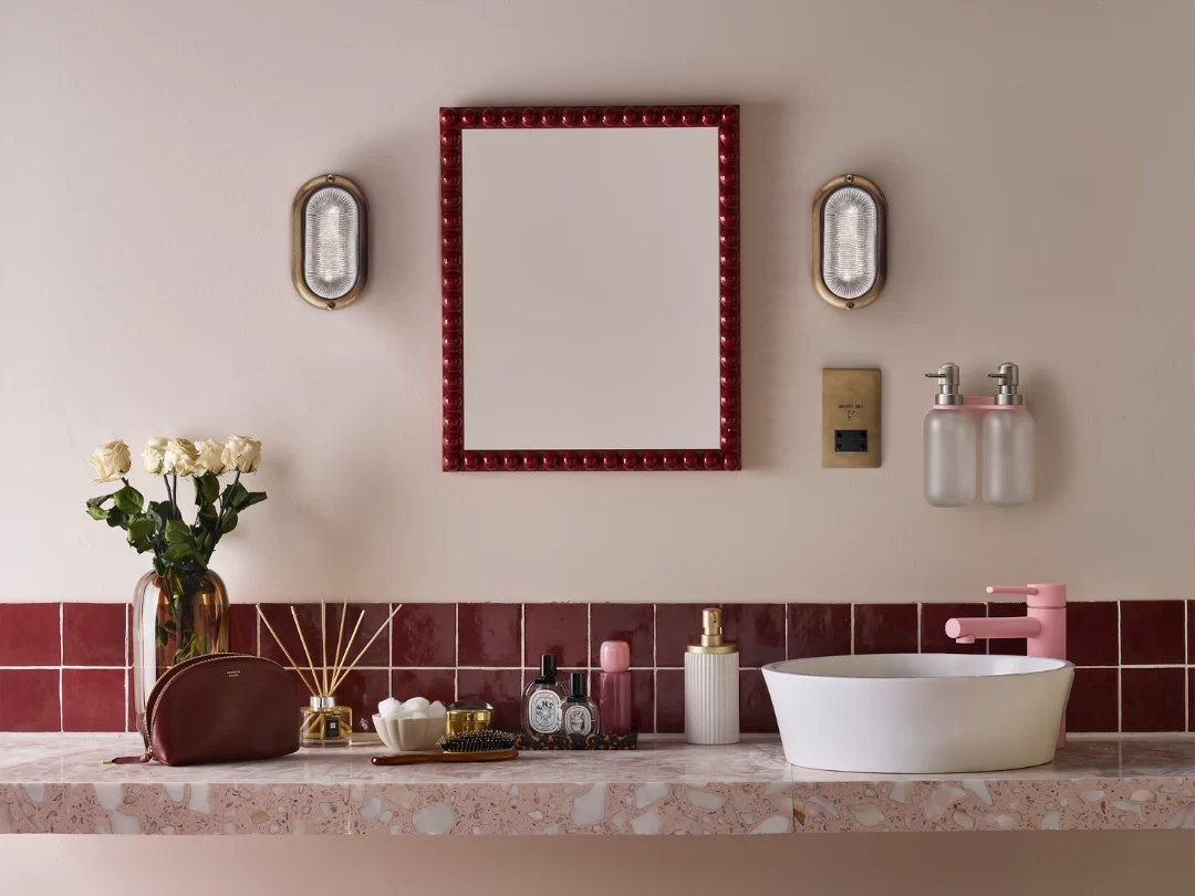 In this design, rich burgundy tiles bring warmth and depth while the lighter pink tones lift the scheme and keep it feeling approachable with a touch of playfulness. Clean lines and simple forms help balance the colour, creating a space that feels calm, comfortable and quietly confident while remaining interesting.