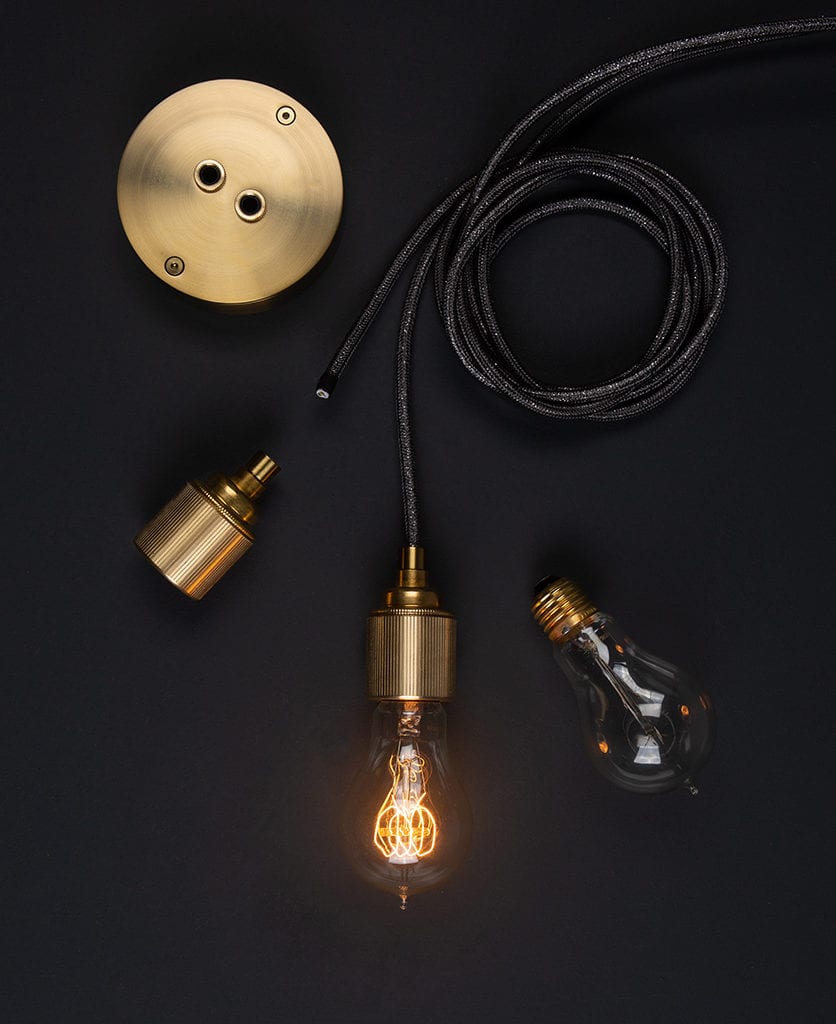 Tracing your fingertip across the metallic toggle switch on the wall, you peer closely at your new ceiling light. The minimal, no-frills design brings an urban edge to the interior, subtly softened with a fabric pendant cord.
