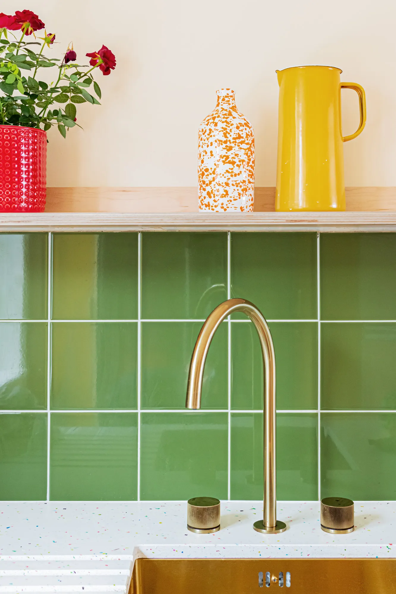 The client sourced the green tiles, which we think are the perfect addition to complete the colour scheme – bold yet still with a familiar homely warmth.