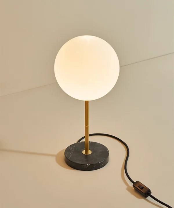 Black marble table lamp with opal globe