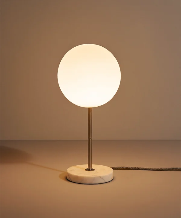 White marble table lamp with opal globe