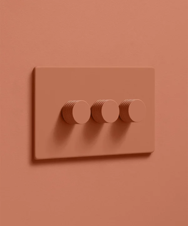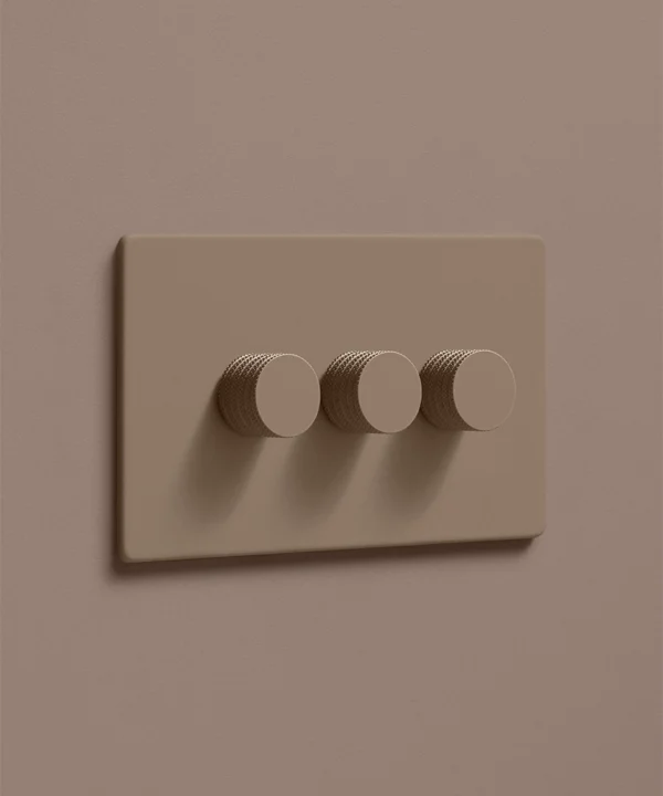 Settling around the dining table with friends, you realise the lighting is a touch on the bright side. Rising from your chair, you reach for the 3 gang dimmer switches and turn the chandelier above the table down to a more complexion-flattering ambience, and dim the kitchen island lights as well—the beauty of having control over three lights in one place.