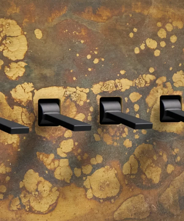 - Smoked gold: These original pieces are brilliant for creative types, representing your unique style and artistic flair. Whether you’re an artist, a visionary, or simply someone who appreciates the finer things in life, these pieces will become a centrepiece of your design. This smoked gold collection of hardware is designed to be exquisitely imperfect, which is what makes them so wonderfully unique. To truly enhance their captivating appearance, consider pairing them with rich mahogany furniture and walls painted in warm coffee tones.