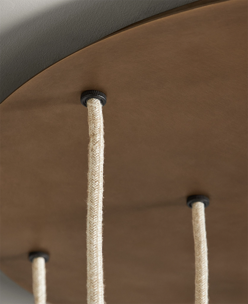 Ideal for larger, vertically generous spaces, this 9 bulb pendant is designed to bring both height and harmony. The antique brass ceiling rose and matching bulb holders pair beautifully with natural materials and layered palettes, from warm oak floors to moody plastered walls. Italian fabric cables — in your choice of classic black or natural linen — allow you to tailor the feel to your space, whether you're leaning into heritage textures or introducing a softer, contemporary contrast. It’s a light that draws everything together — casting not just illumination, but a certain kind of mood.