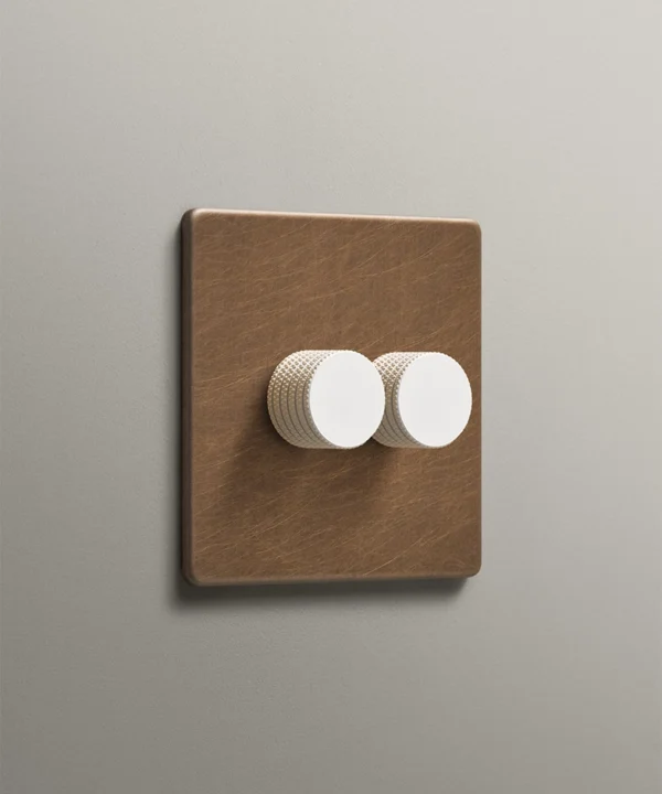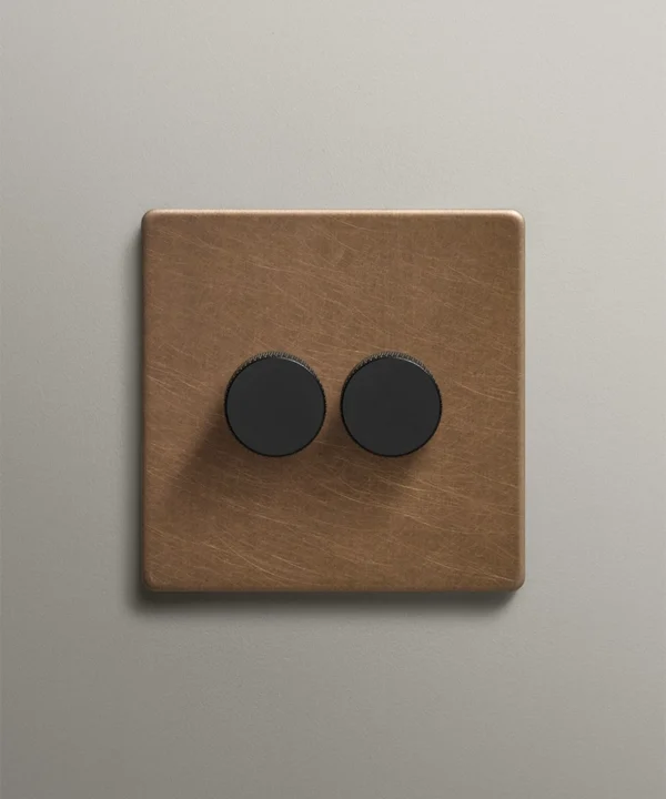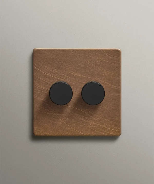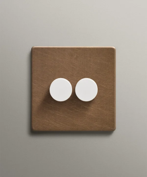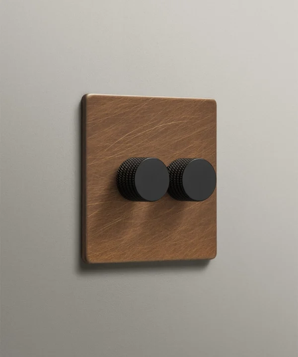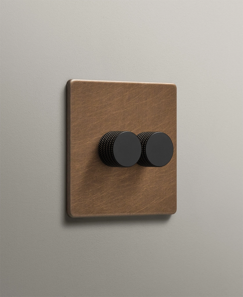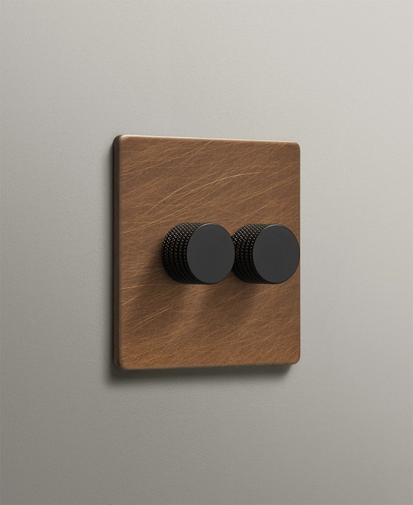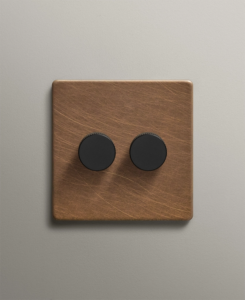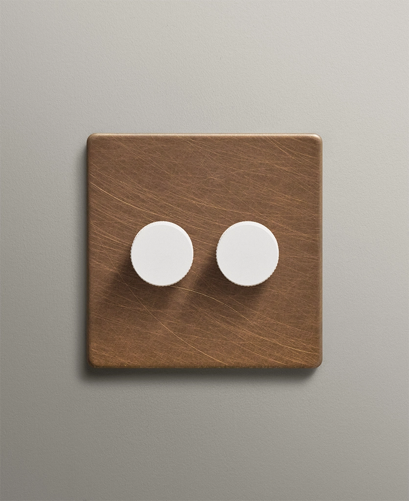 Placing your cuppa on the mid-century coffee table, you notice the encroaching darkness and breeze over to the antique brass double dimmer switch on the wall. Slowly turning one of the dials, you watch as your ceiling light gently illuminates, casting an ambient glow across your carefully curated space.