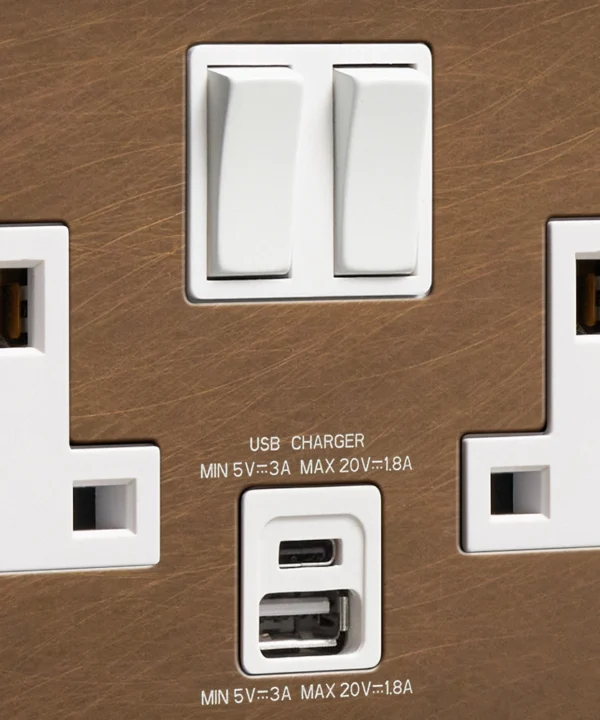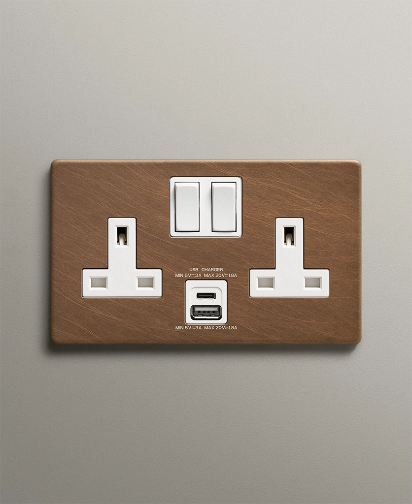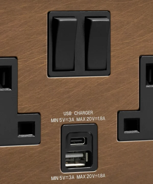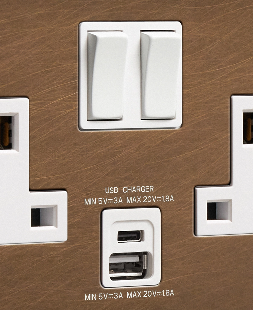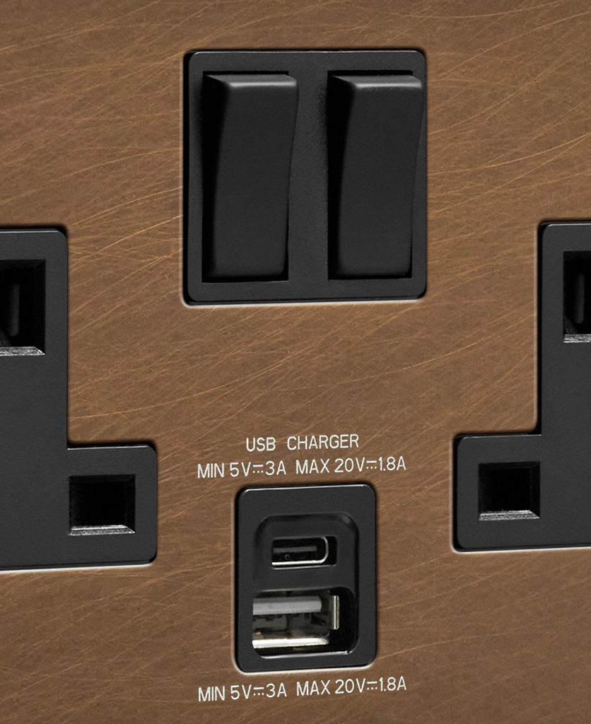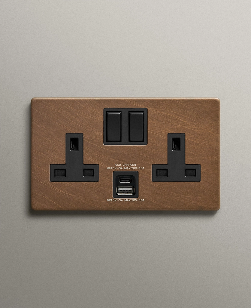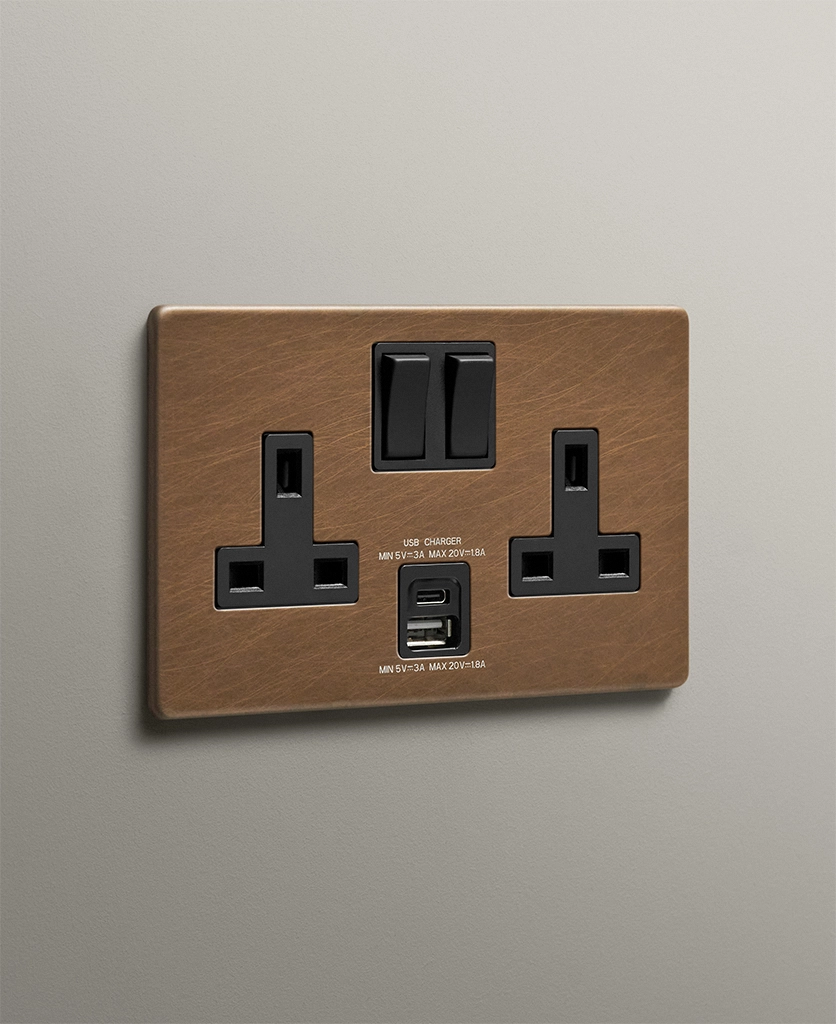 Home / Shop / Plug Sockets / USB Sockets / Double Socket USB / Antique Brass double socket with USB and USB-C