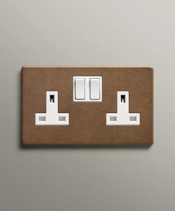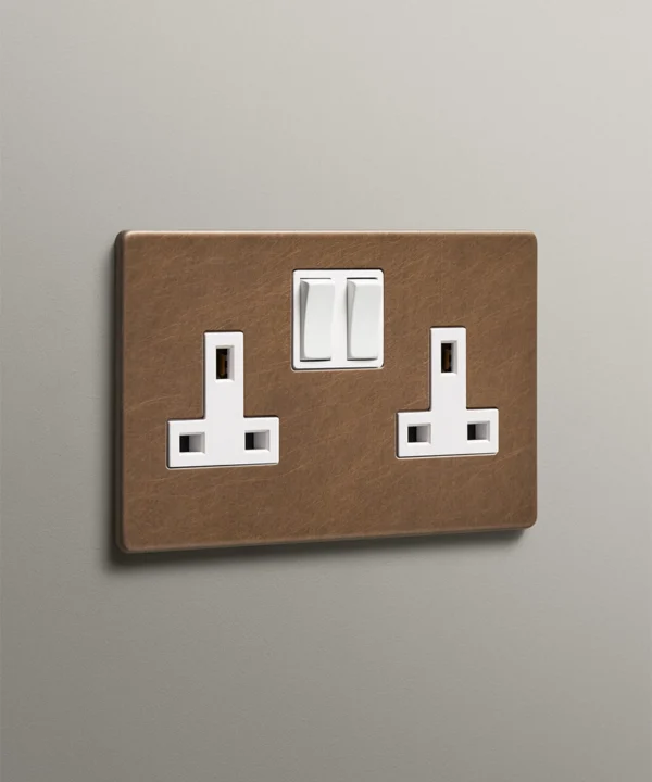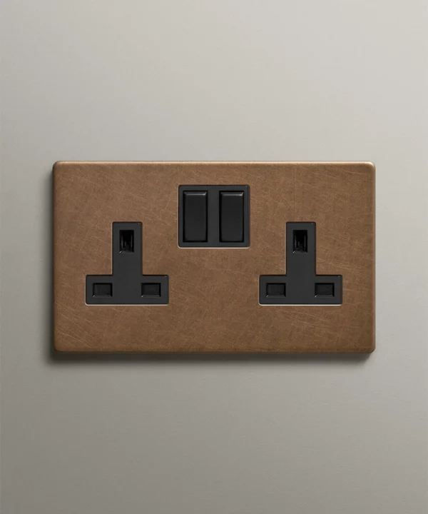 The antique brass double socket has an intentionally distressed finish, giving it the perfect heritage look. The sockets' aged appearance sits authentically in modernised period properties, especially with the matching antique brass light switches.