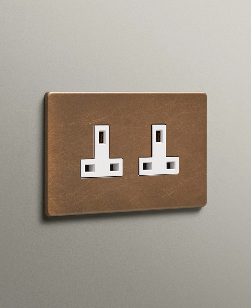The Antique Brass Unswitched Double Socket: A minimalist's dream in a beautiful heritage finish