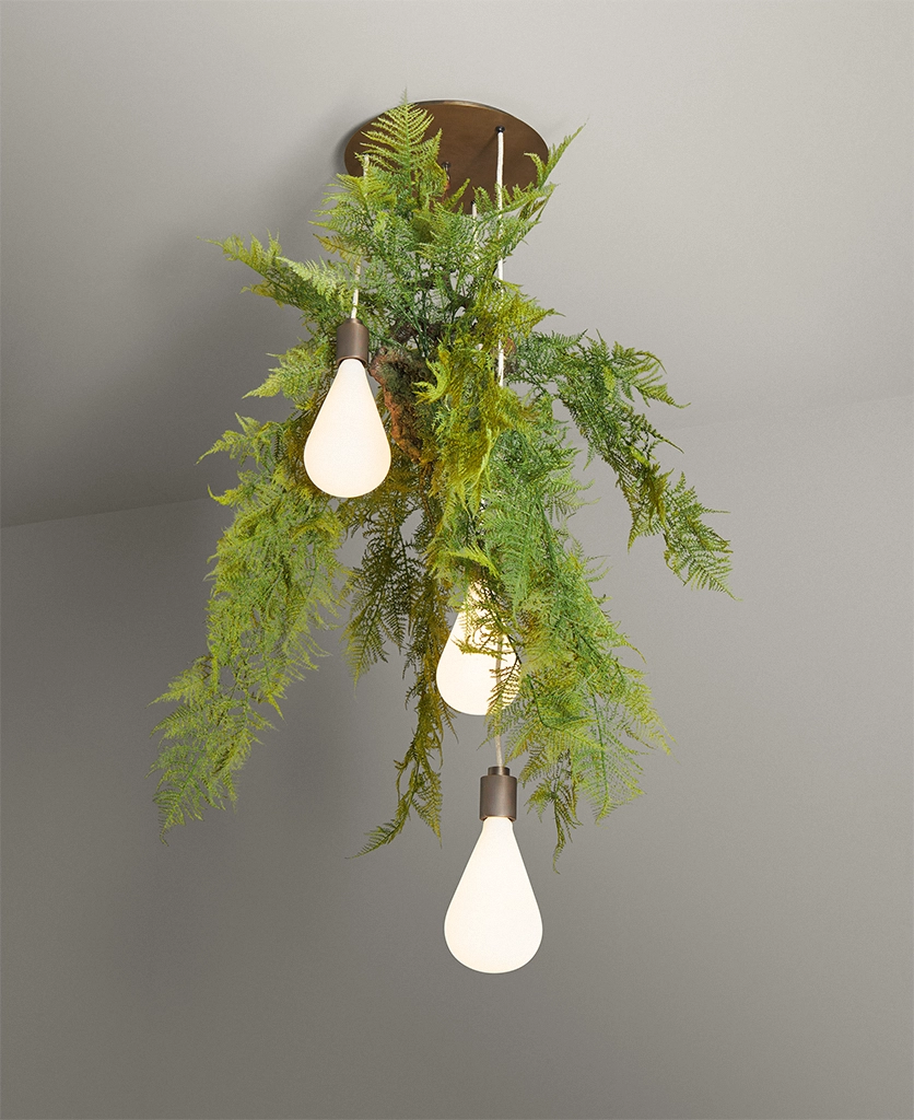 - Origins: ceiling rose & bulb holder sourced from our partners in China, faux fern from Sweden, fabric cable from Italy, hand-assembled in Yorkshire