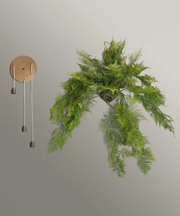 - Included: fitted with a rose, bulb holders, fabric cable, c-hook, large faux fern, fixings, and instructions