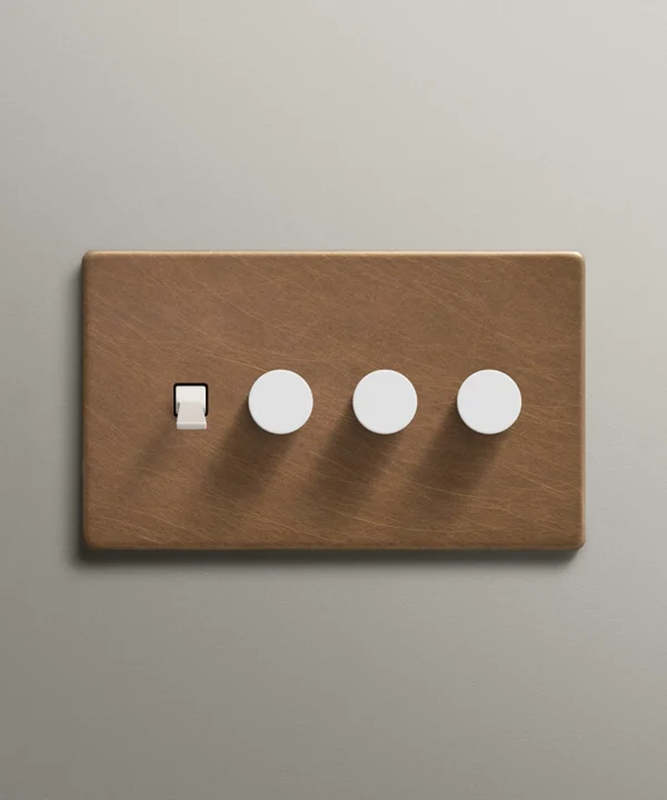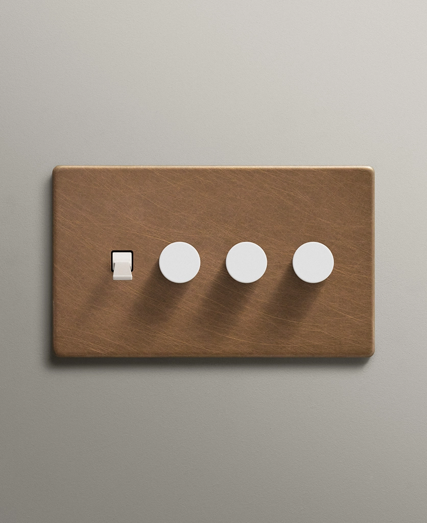 Your frosty cheeks flush a deeper shade of pink as the indoor heat soothes your chilled skin, and you smile contentedly. Wandering towards the light switch mounted perfectly on your panelled wall, you pinch the antique brass dimmer switch and gently twist, illuminating your wall sconces to the perfect level of warmth and ambience.