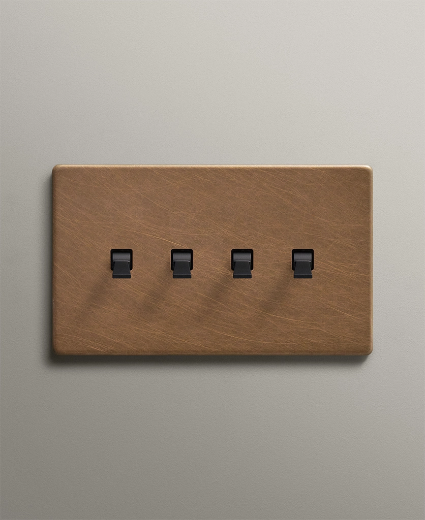 Antique Brass quadruple tapered toggle light switch