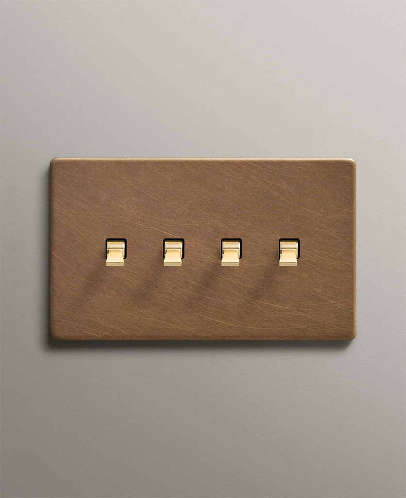 Antique Brass Quadruple Tapered Toggle Switch