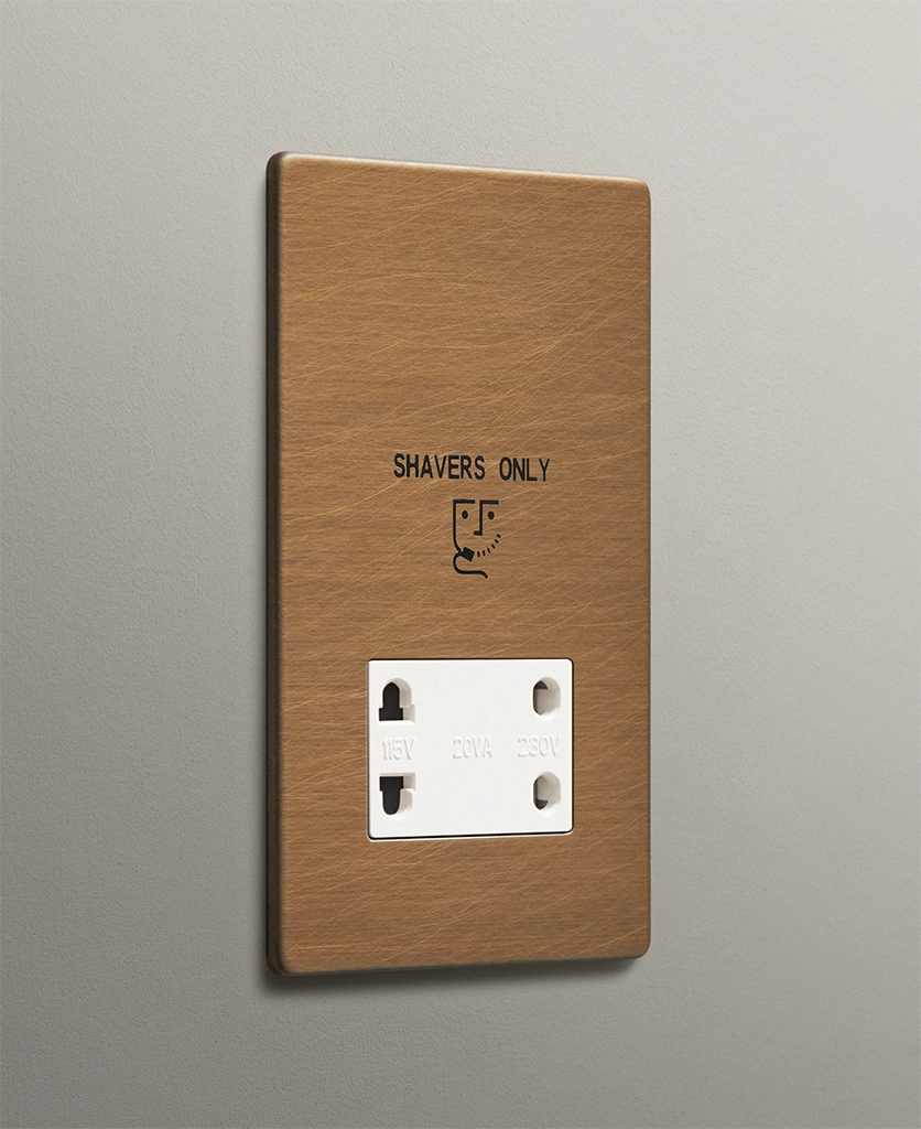 Checking out your reflection in the mirror, you run your fingers over your stubble, deciding whether or not to shave this morning. Spying the antique brass shaver socket beside the sink, you smile. It coordinates with your heritage bathroom perfectly, reminding you of the old-school gentlemen’s barbershop you sometimes frequent.