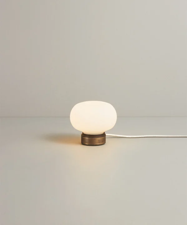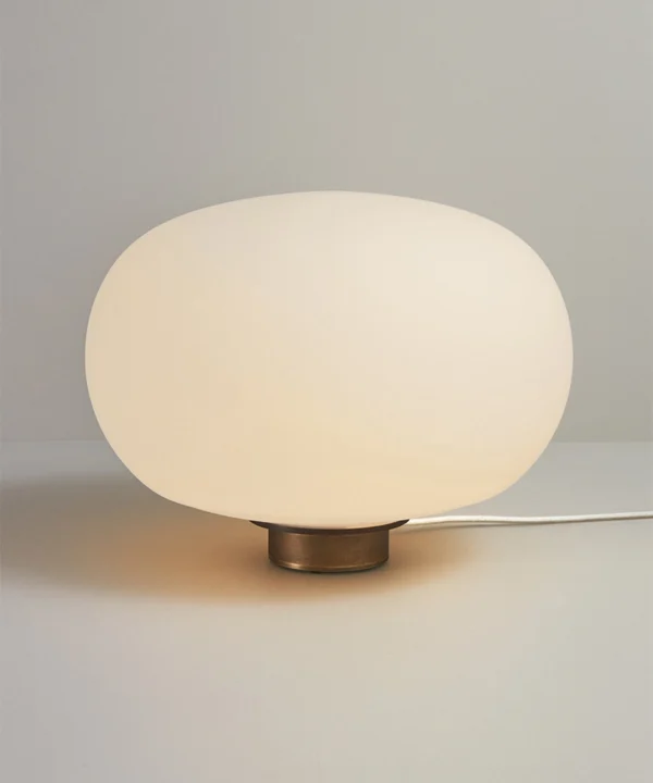 Perching on a stool at the kitchen island, you switch the antique brass pebble lamp on, watching as the frosted glass shade bathes your space in a soft, warm glow. Your shoulders relax as the day winds down, and you take comfort from the gentle light while you enjoy a quiet cup of tea. You never thought about having a lamp in your kitchen, but the compact size fits beautifully on your countertop, adding a touch of elegance without cluttering the surface - perfect for creating a cosy ambience as dusk settles in.