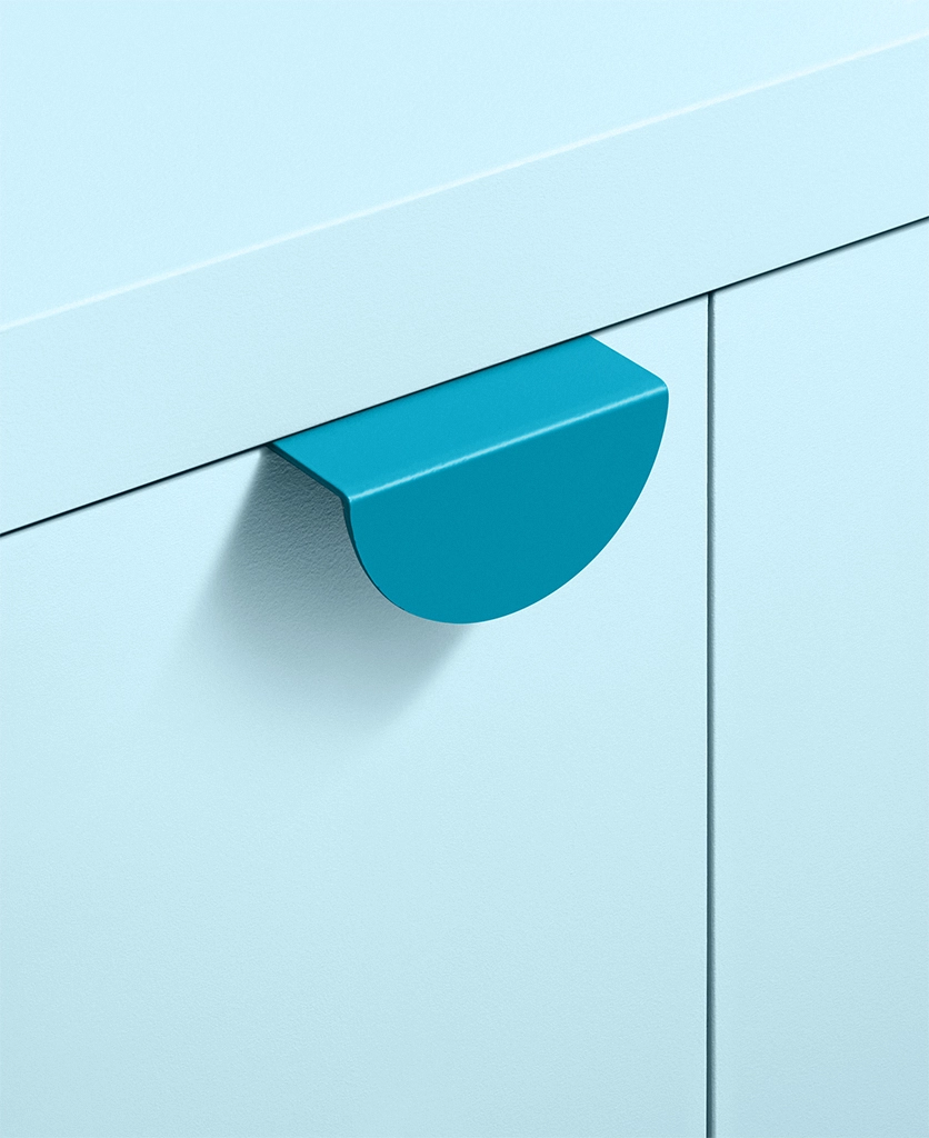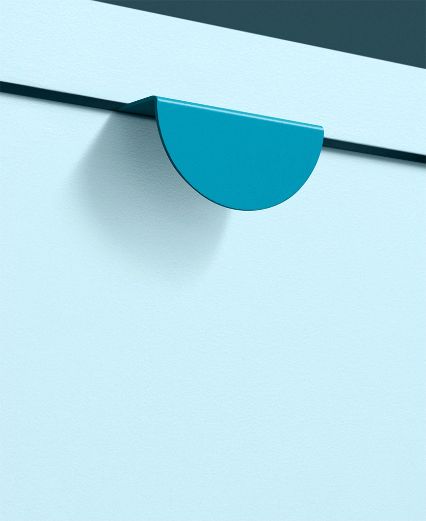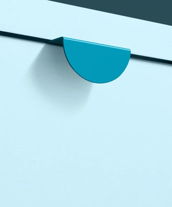 Pulling open a drawer, your eye catches the soft turquoise curve — cool and invigorating, like morning light reflected on water. The Aqua Mezzaluna handle brings clarity and ease to daily rituals.