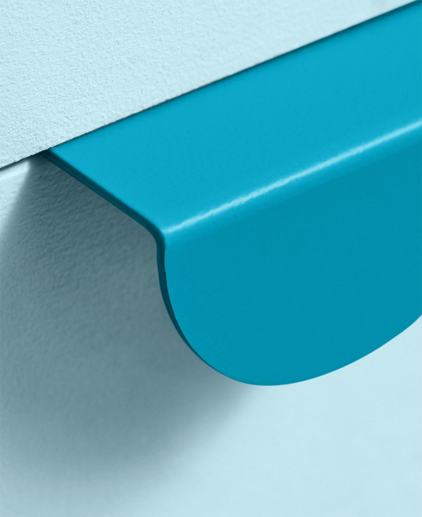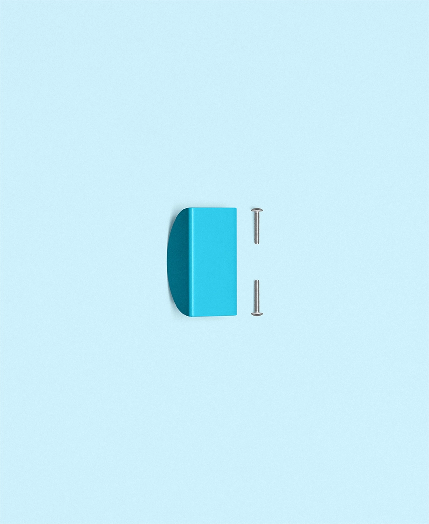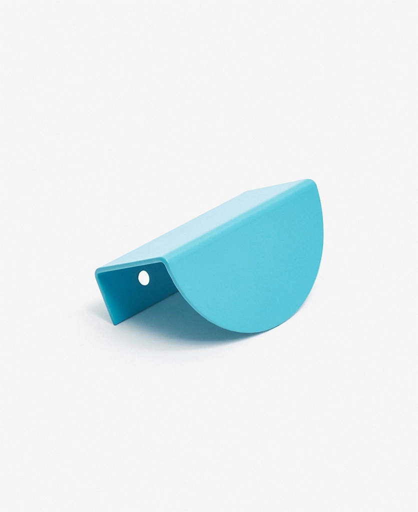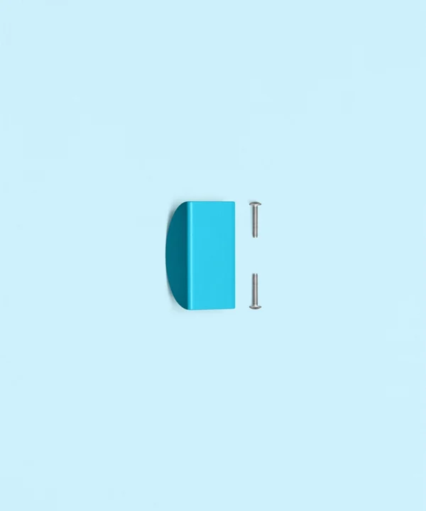 Finished in matt powder-coated Aqua, its metal form offers both durability and a smooth, satisfying touch.