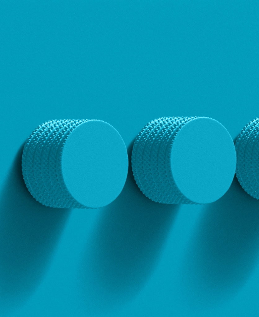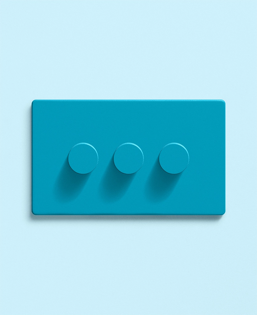 An Aqua Triple Dimmer: Calming control; a soft wash of dopamine-rich colour