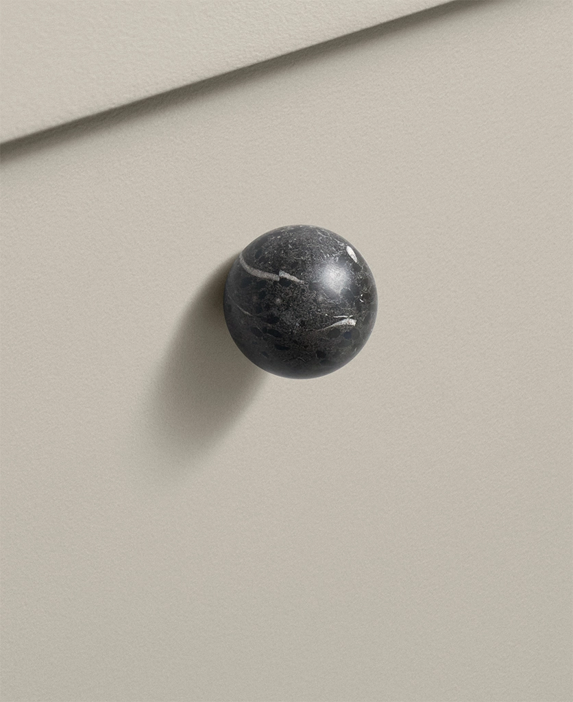 The Black Marble Knob brings a more defined, architectural feel to furniture, combining deep stone tones with a smooth spherical form that feels confident and tactile.
