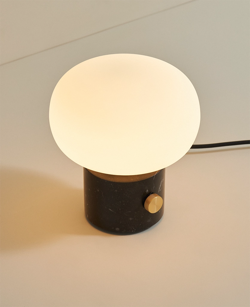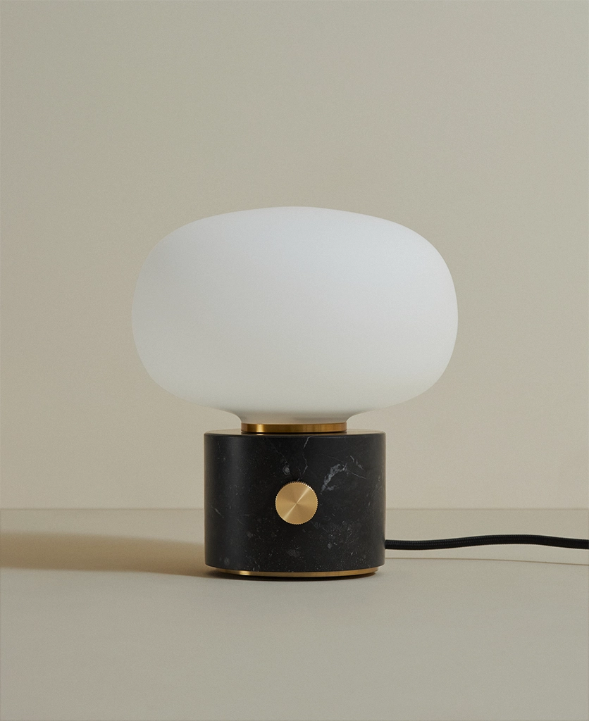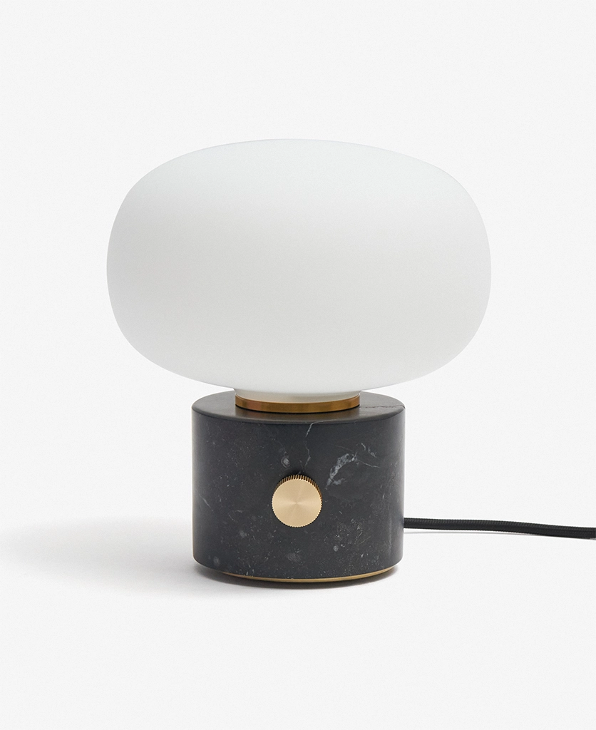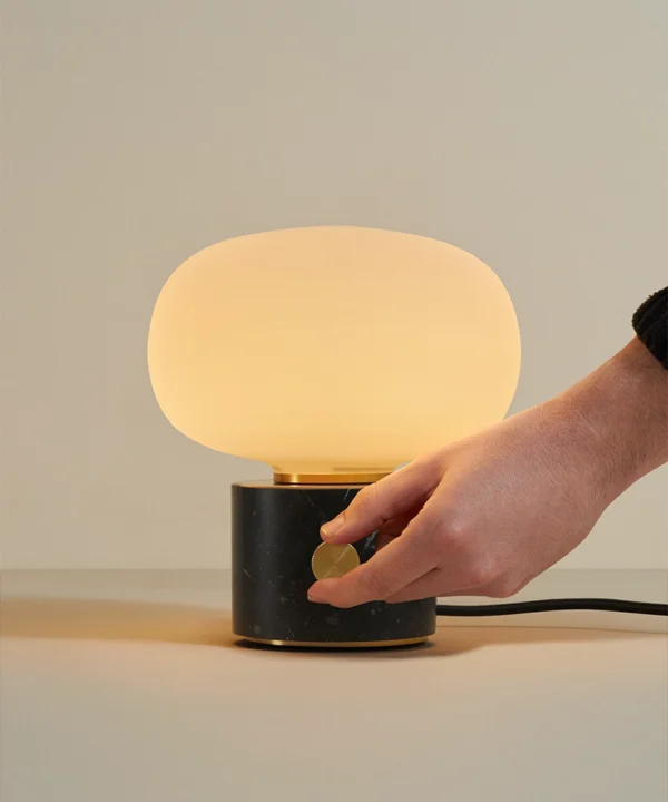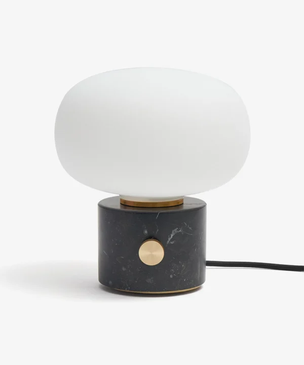 A black marble pebble dimmable table lamp: Sculptural shape with moody lighting
