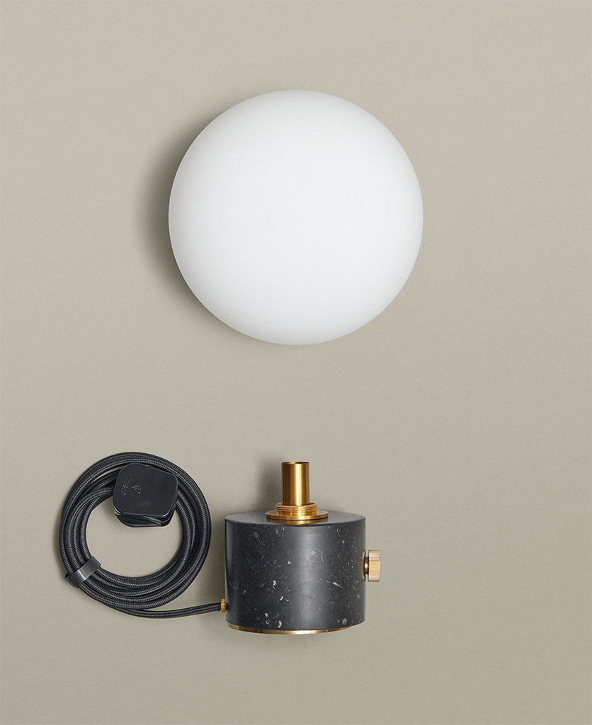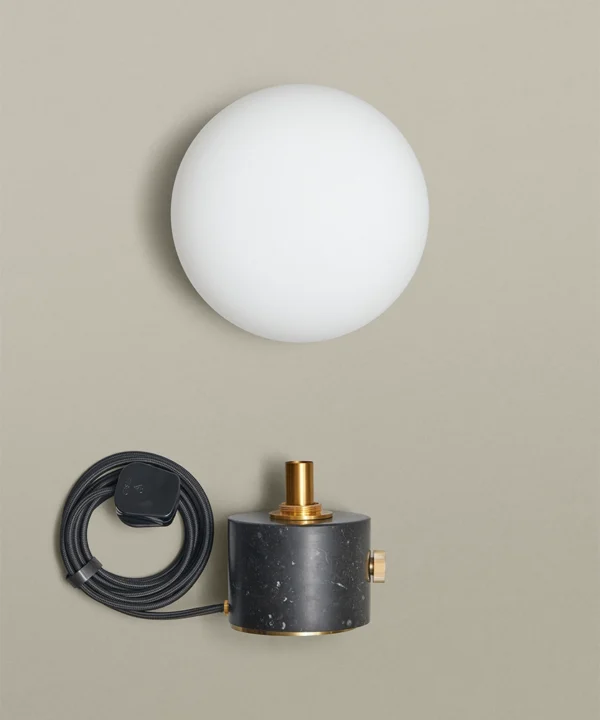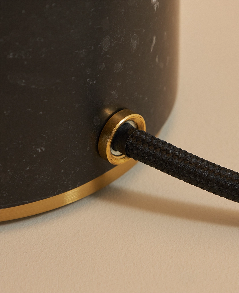 - Origins: marble base from Thailand, shade and components from China, inline switch, plug from the UK, fabric cable from Italy, and hand-assembled in Yorkshire