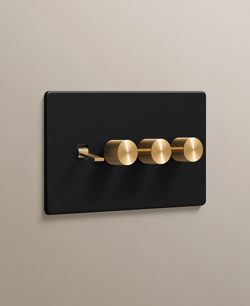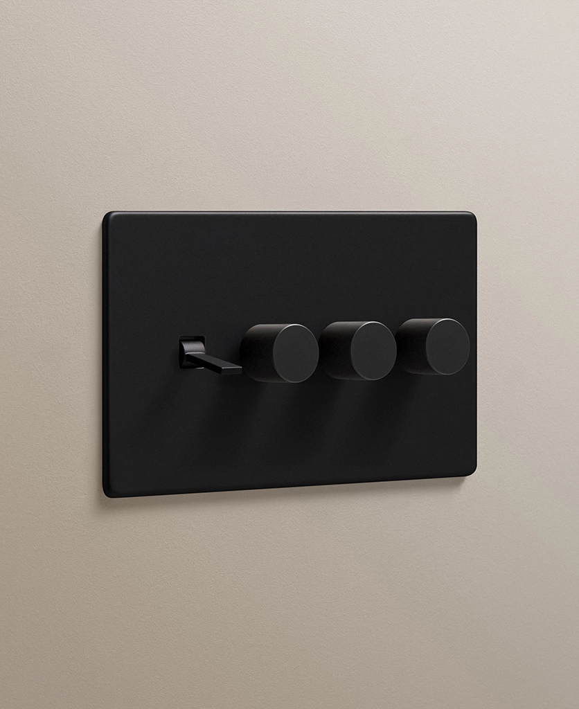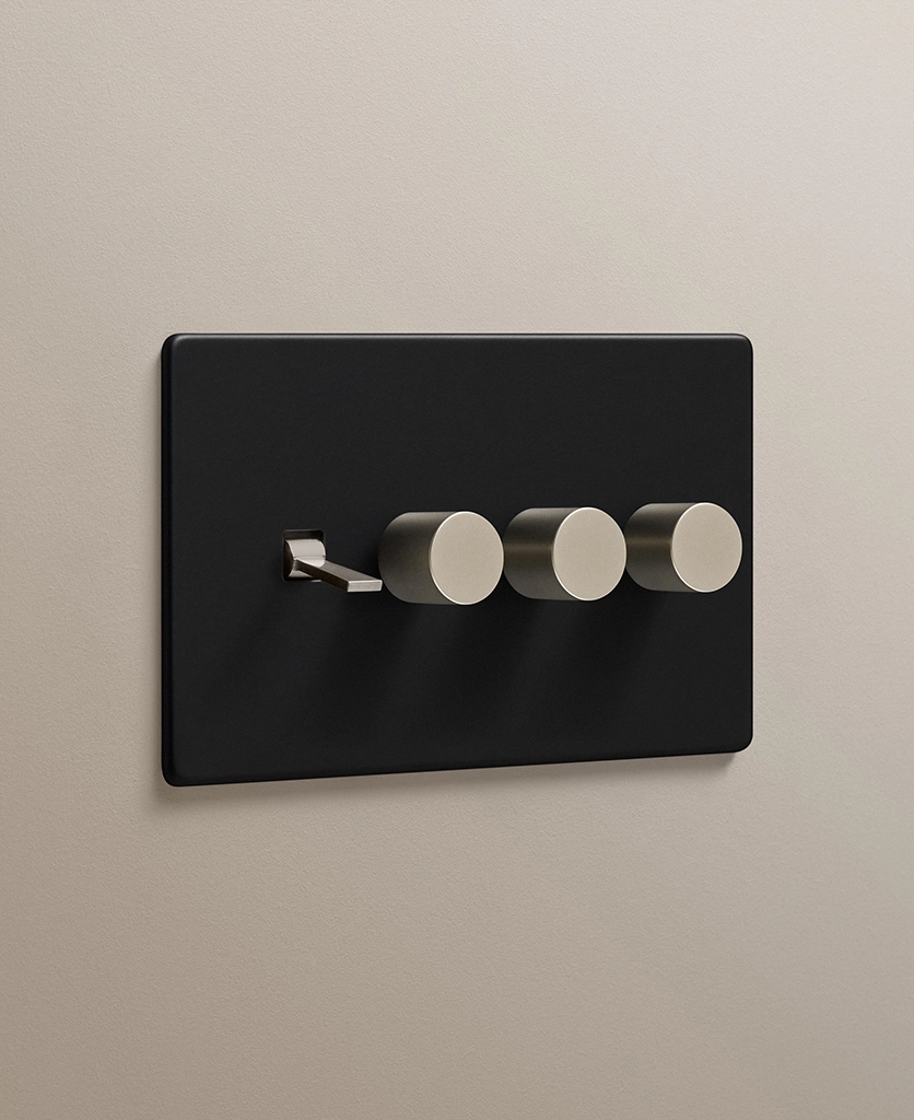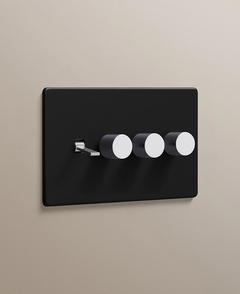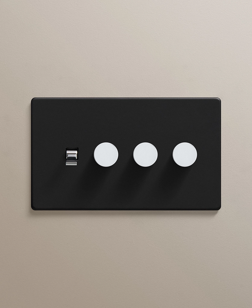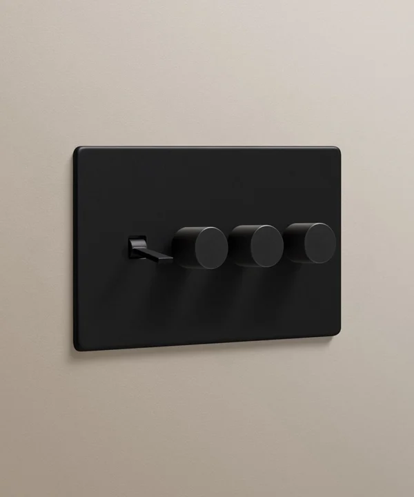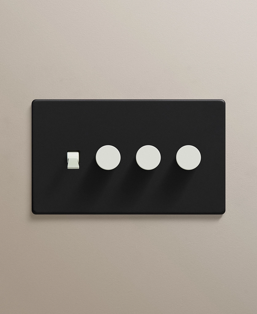 Black quadruple combo switch (1 toggle, 3 dimmer)