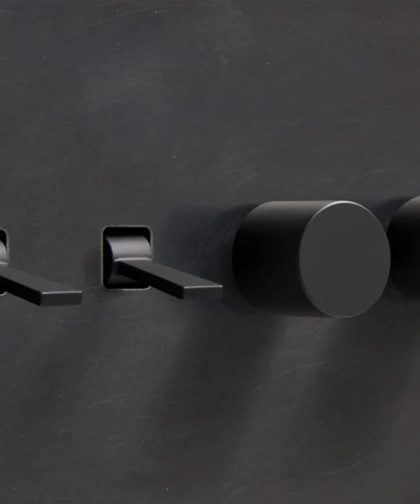 The hand-finished blackened steel faceplate brings a subtle, industrial edge to your interior, with a gently distressed patina that adds texture and depth. It sits effortlessly alongside warm neutrals, timber accents, and natural stone, offering a refined contrast in even the most understated schemes.