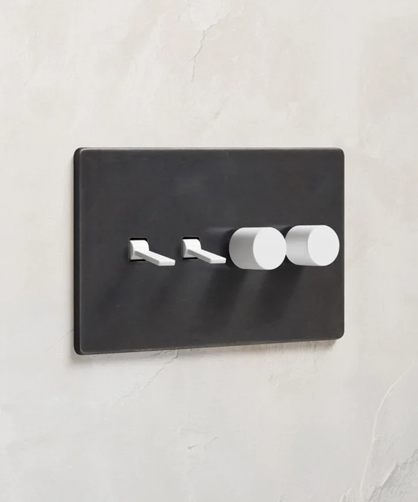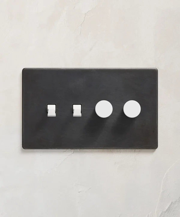 With two toggles and two dimmers, this switch is perfect for homes where practicality and atmosphere need to work side by side. Fixed lighting for utility, adjustable zones for mood—it’s a setup that suits open-plan living, large kitchens, or multi-use rooms where flexibility is key.