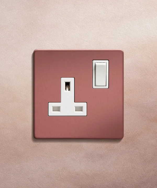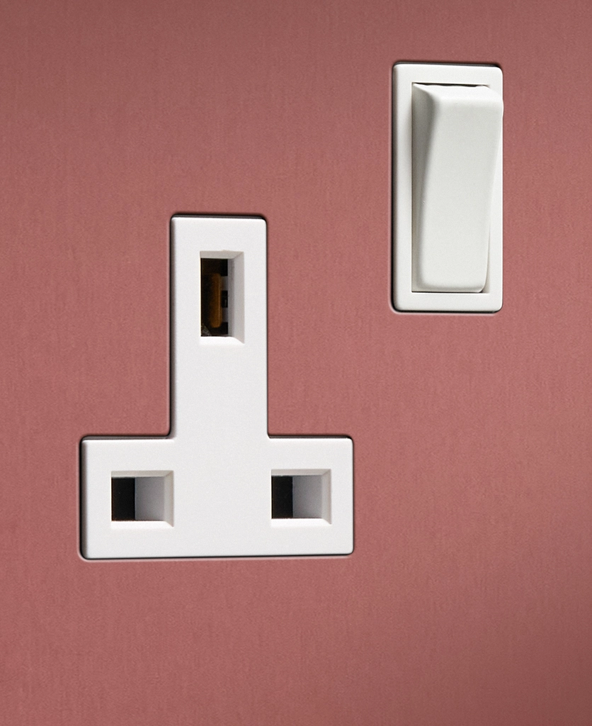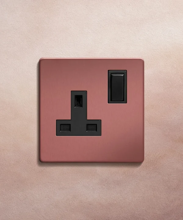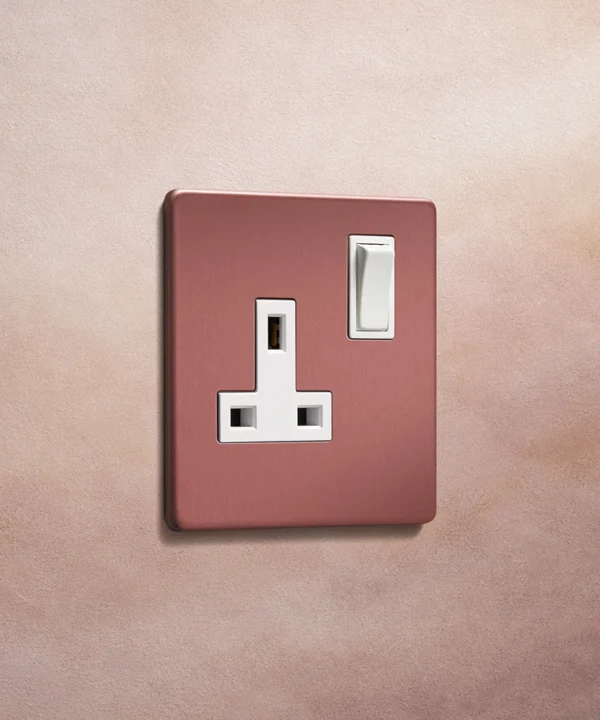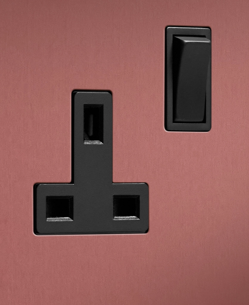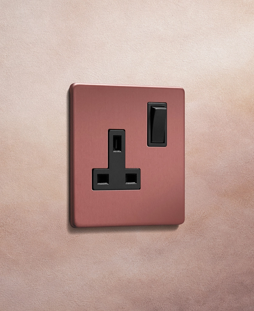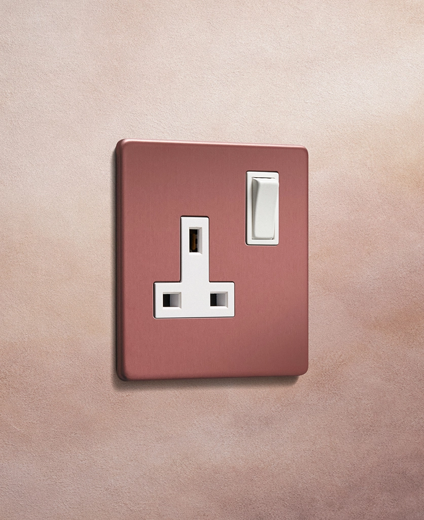 A brushed Blush single socket designed to bring soft rosé-toned warmth to everyday power points.
