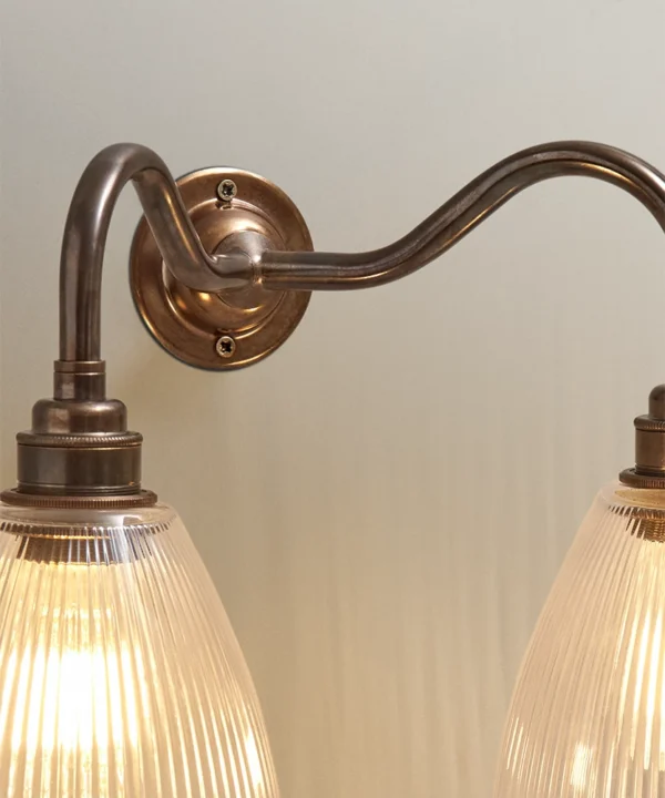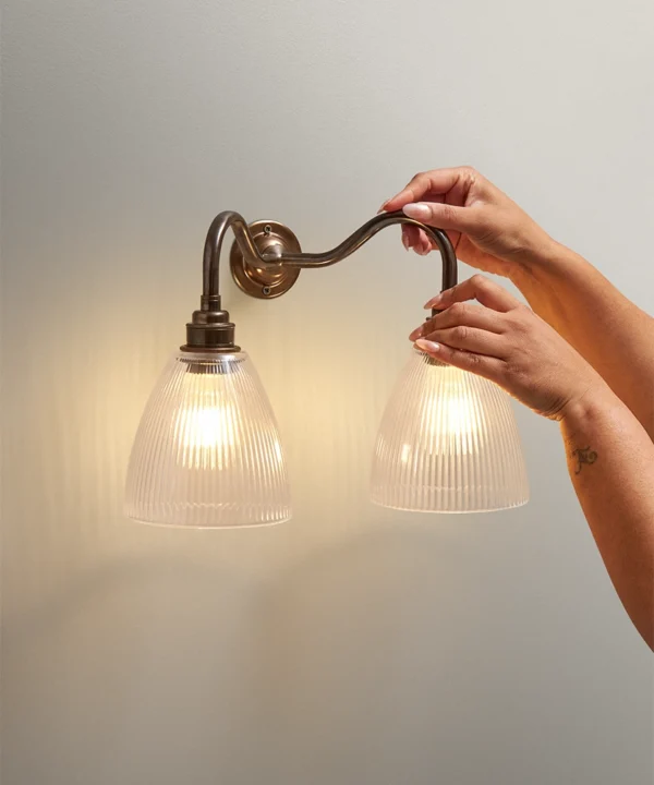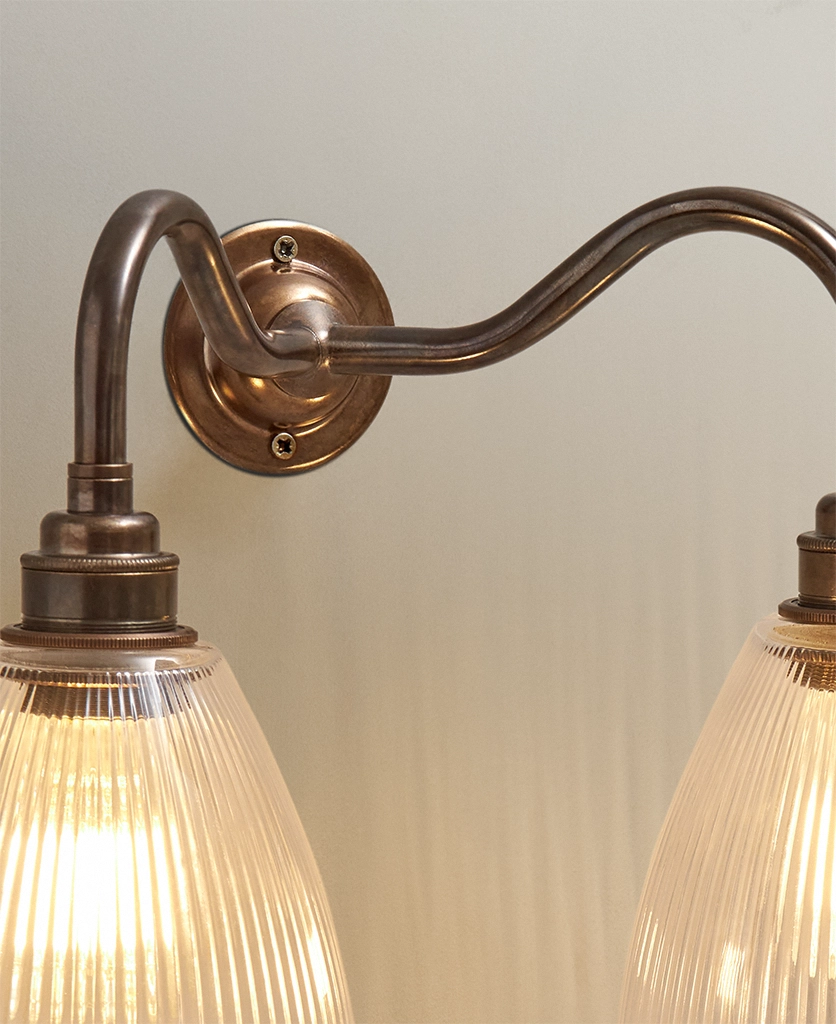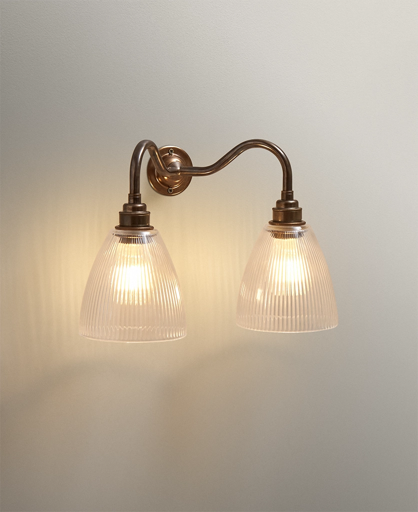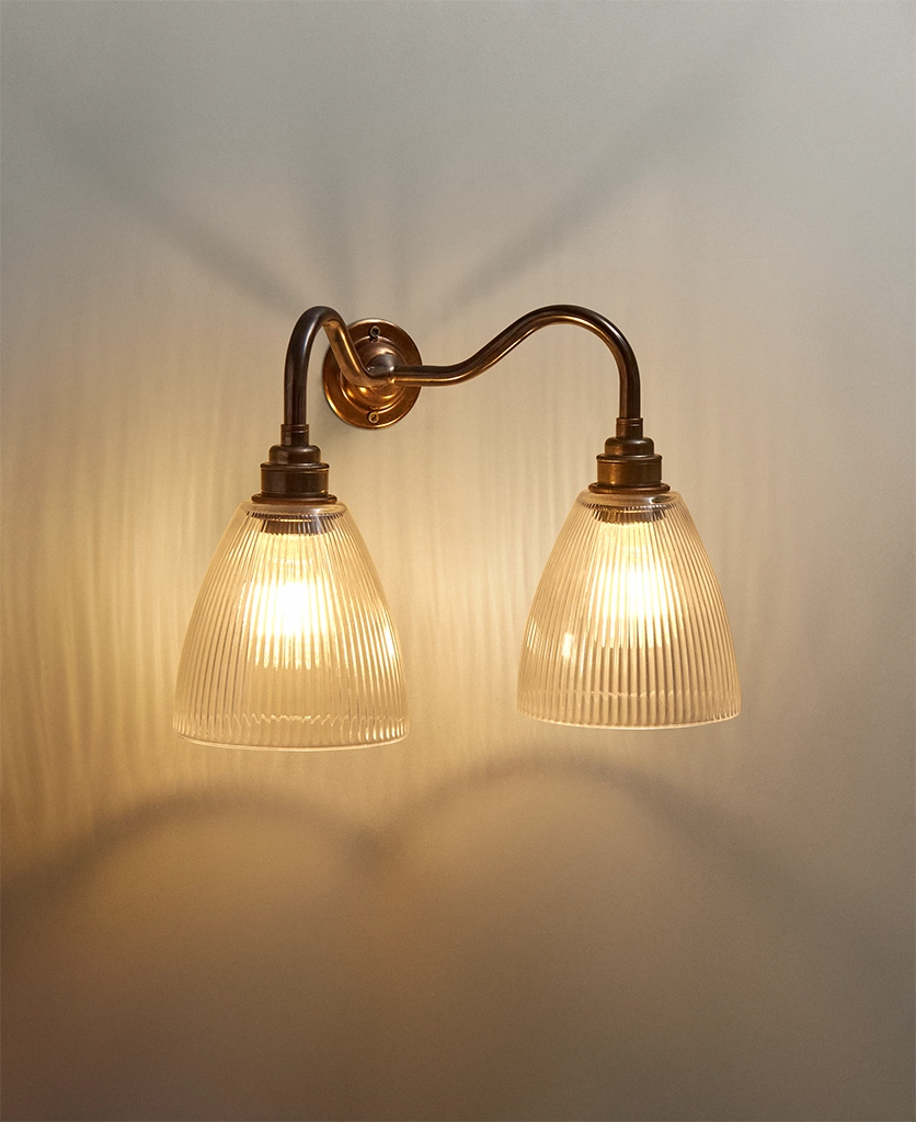 Perfect in bedrooms for balanced bedside lighting, this double wall sconce also works beautifully in hallways, dining rooms and sitting rooms. Its aged brass finish complements heritage colour palettes and natural materials, while the fluted glass adds texture that feels just as relevant in modern spaces.