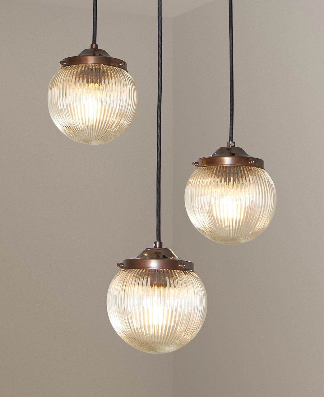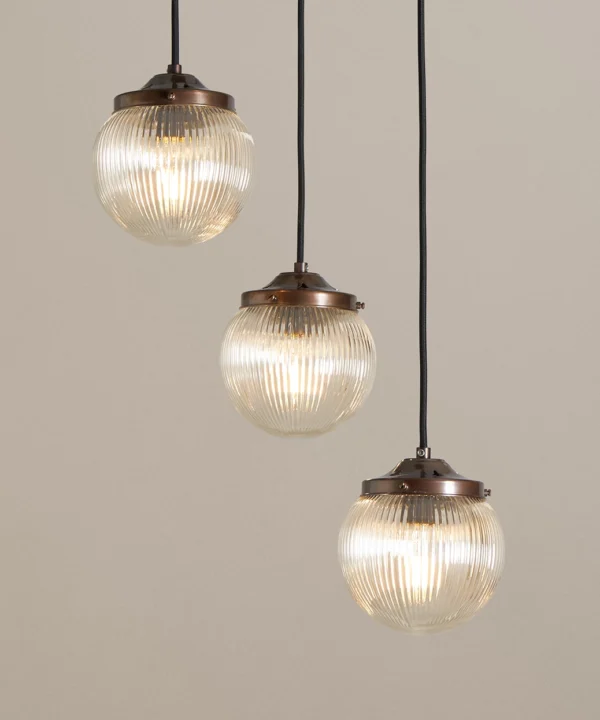 Home / Shop / Shop Lighting by Style / Cascade Lighting / Brewer’s Brass fluted globe 3pt cluster