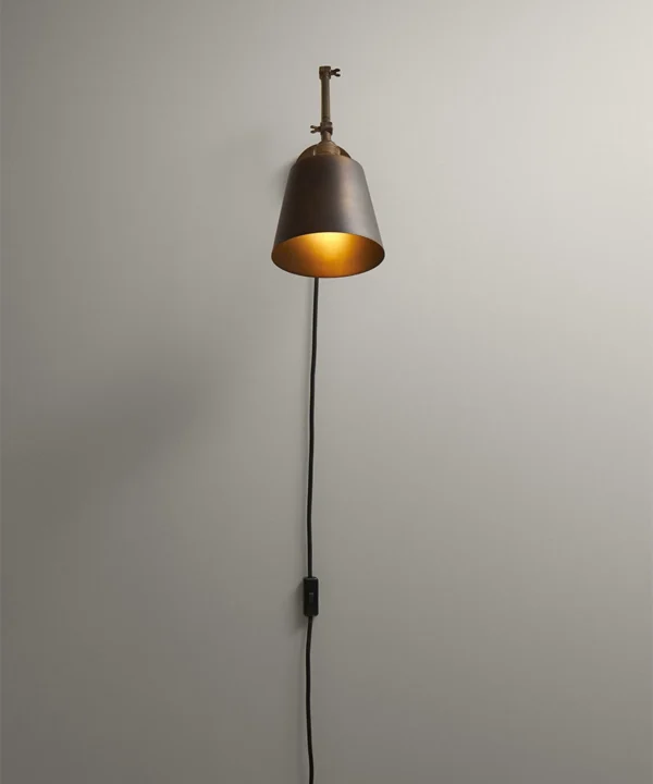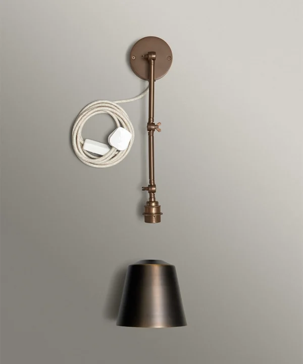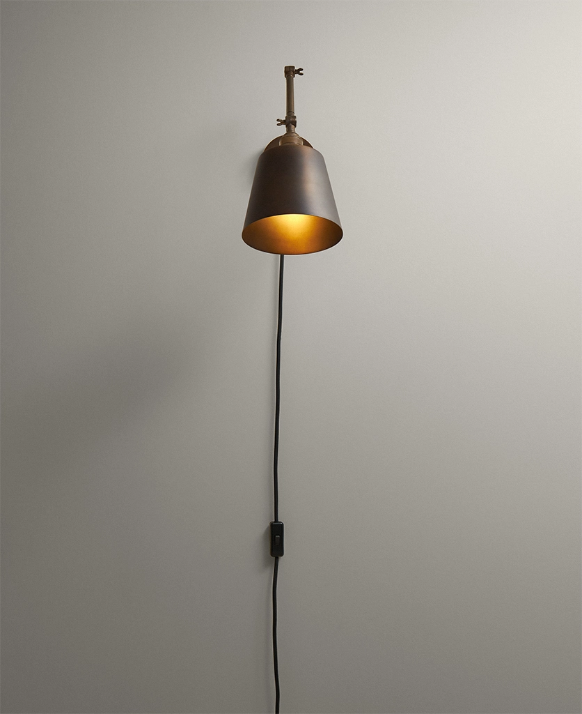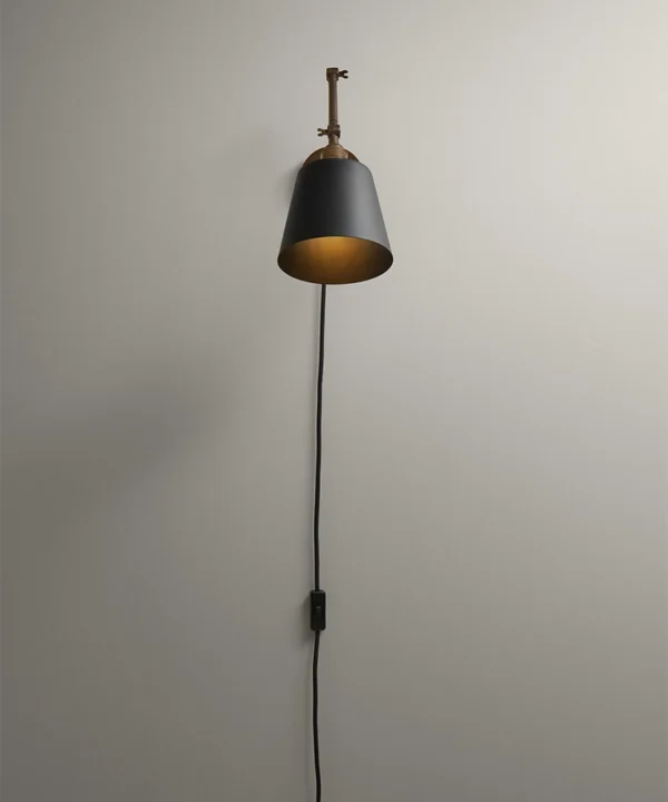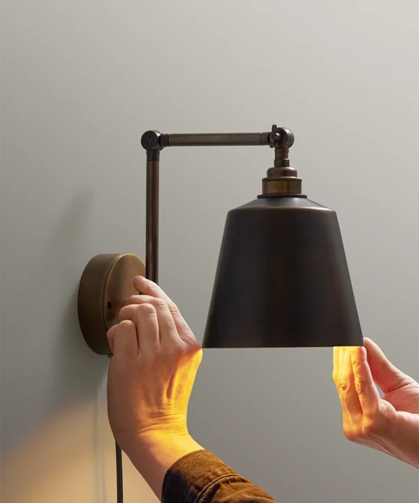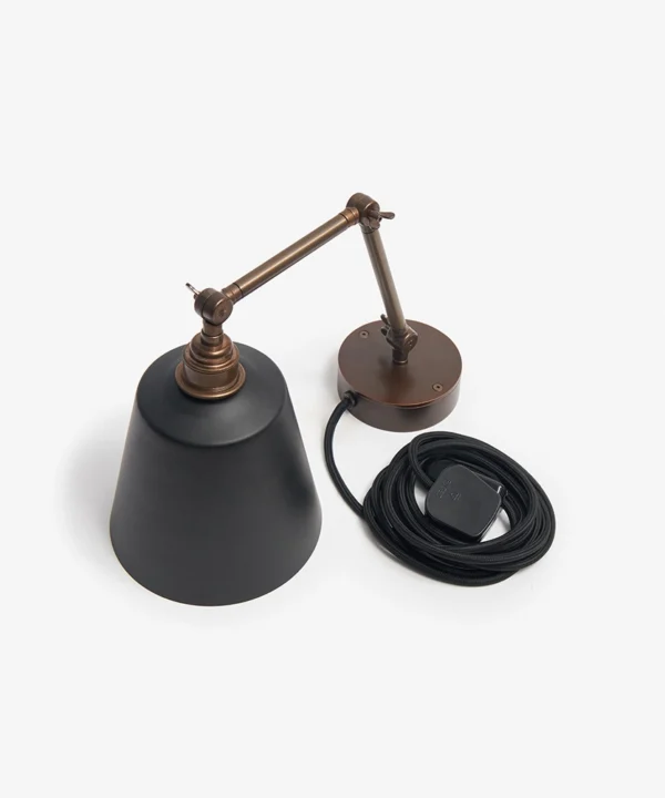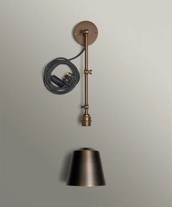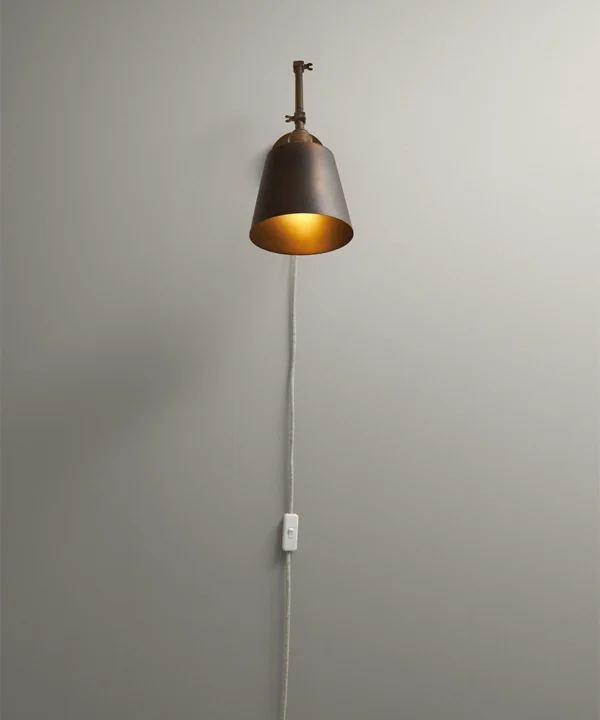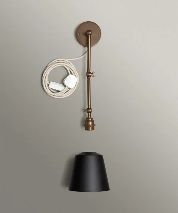This is an ideal plug-in wall light for bedrooms, hallways or even dining areas where you want atmosphere without the disruption of installation. With its adjustable brass arm and choice of cable colour, it lets you tailor the look while adding warm, industrial notes to your space.