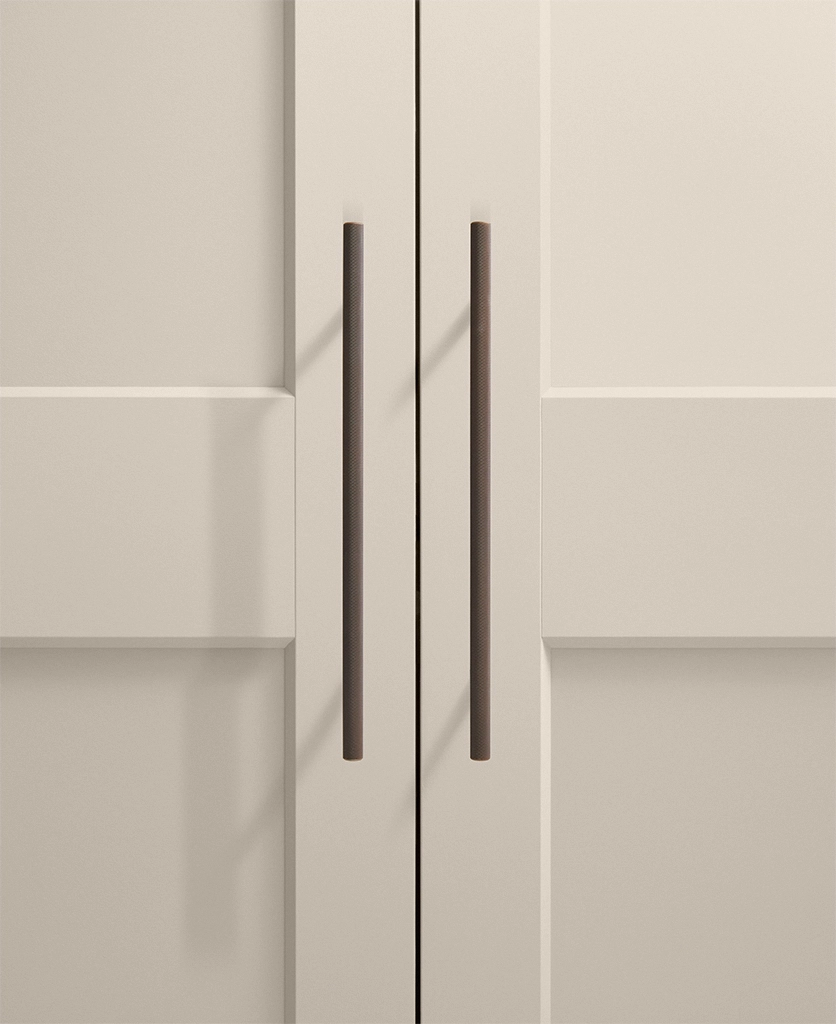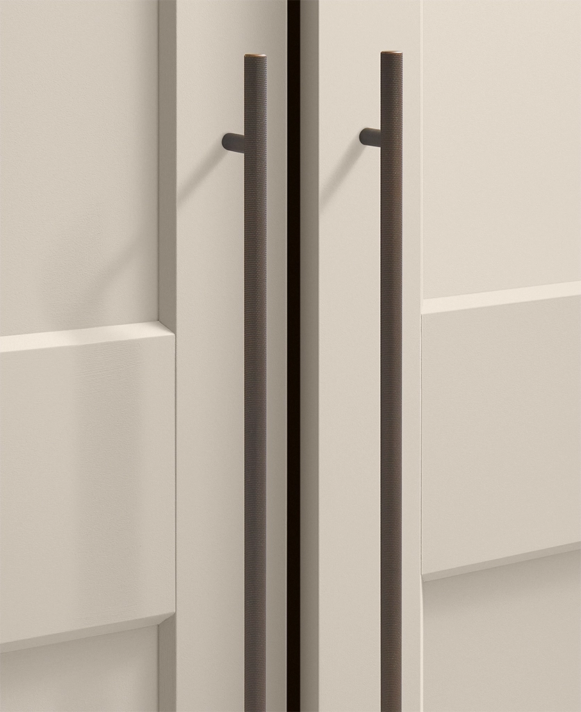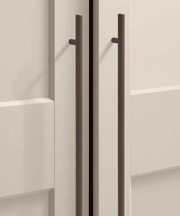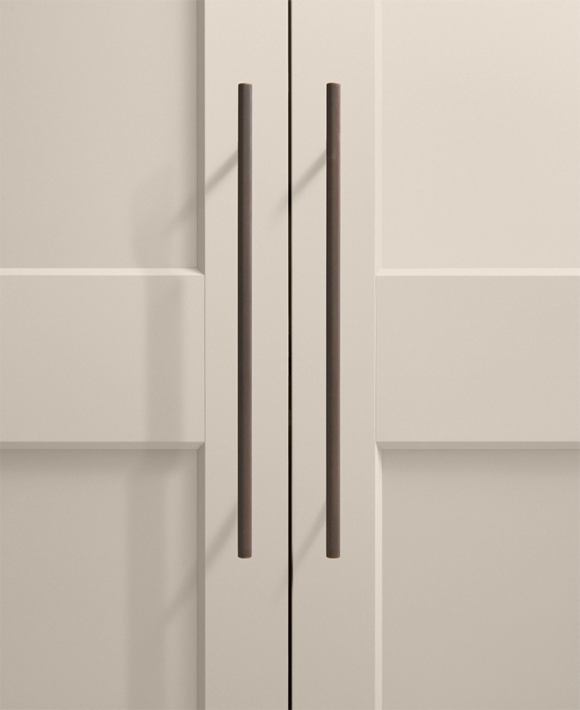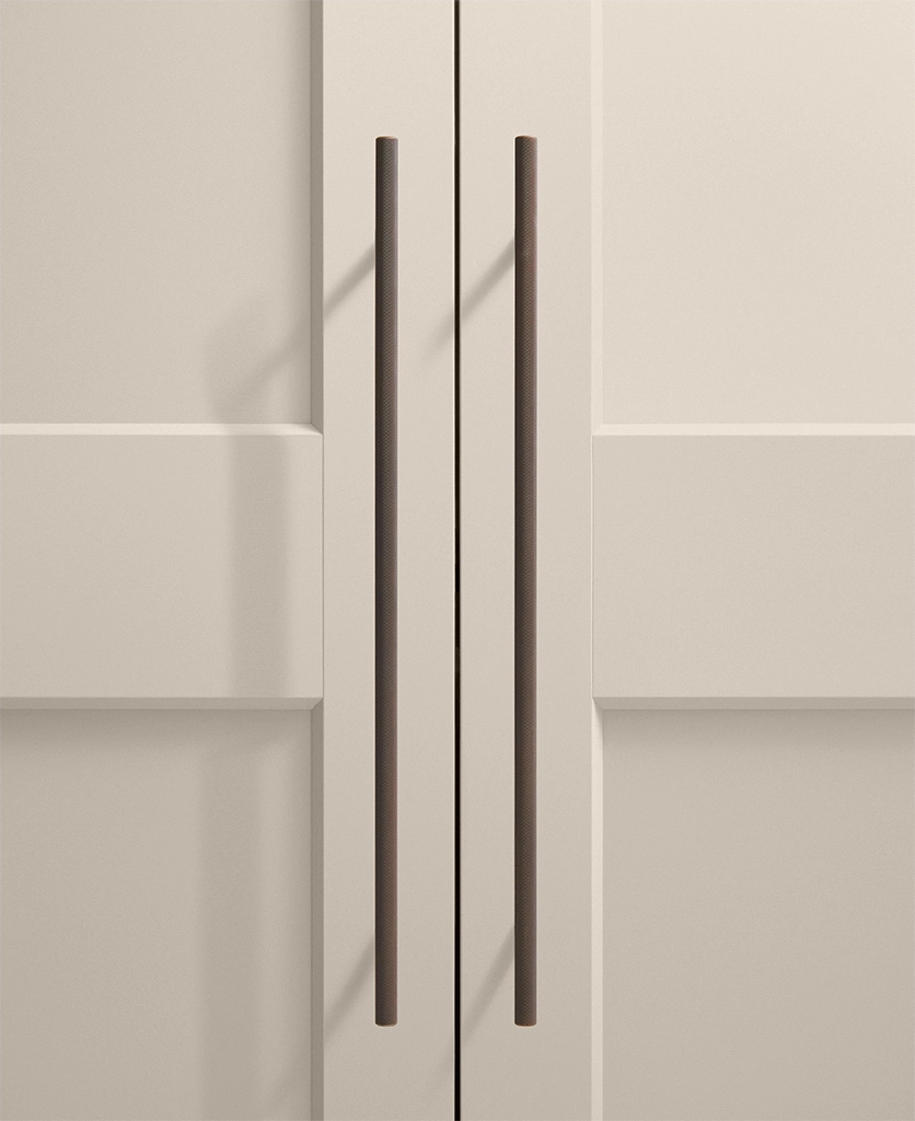 Reaching for your wardrobe, you’re met with the substantial feel of the Chunky Skyscraper handle — cool, weighty, and reassuringly bold. Its thick cylindrical shape and deep bronze tone bring instant structure to your space, transforming simple cabinetry into a design feature. Every detail feels intentional, every proportion carefully considered.