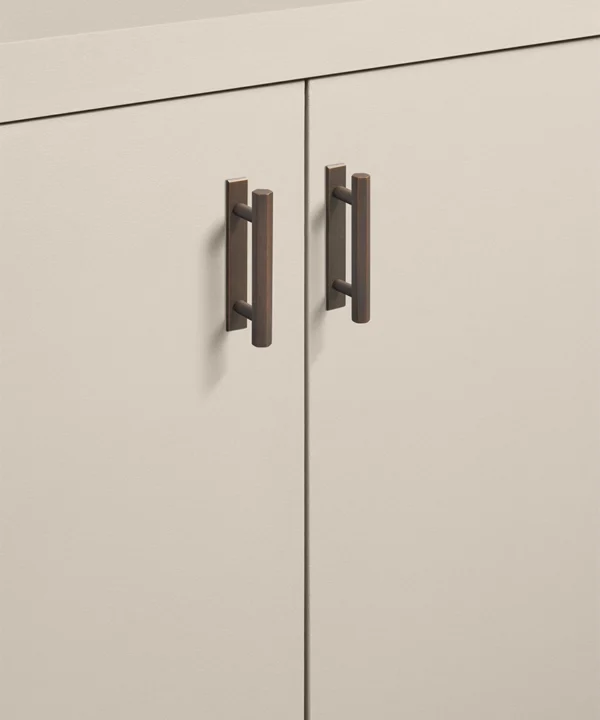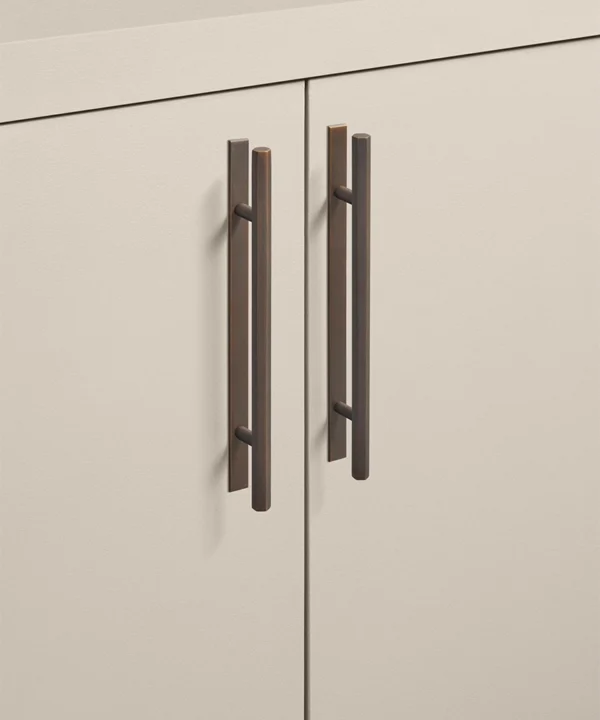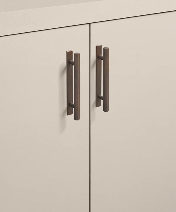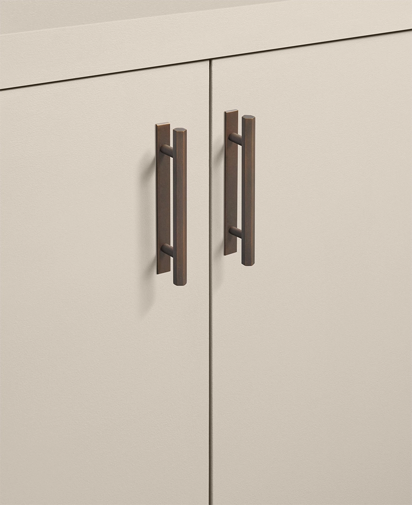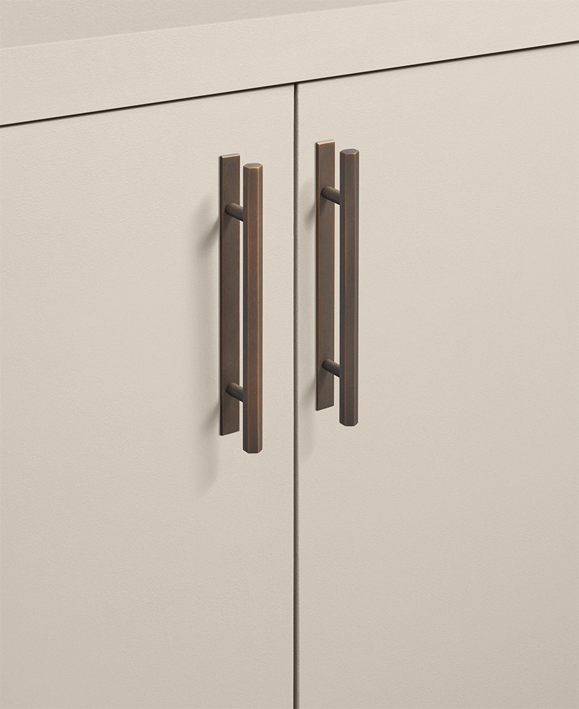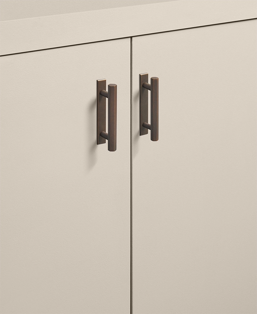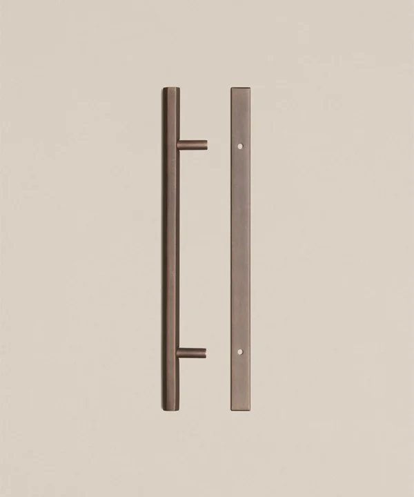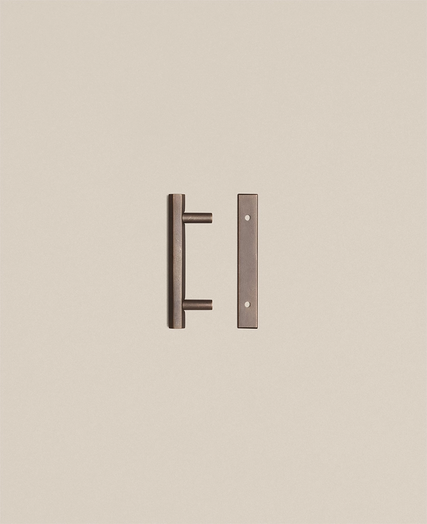 Ideal for renovation projects and larger cabinets, this handle combines practicality with design intent. The plate adds definition and presence to the Hive’s clean lines, while the bronze finish brings a soft, golden depth that complements both natural wood and painted surfaces.
