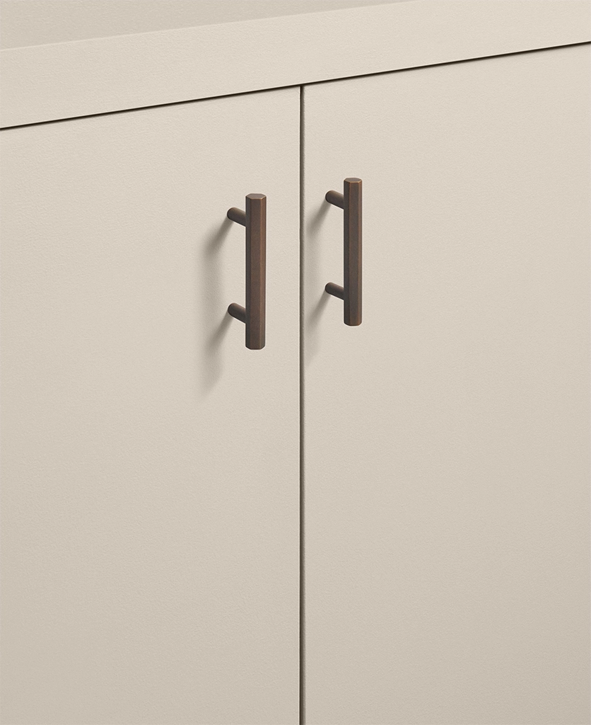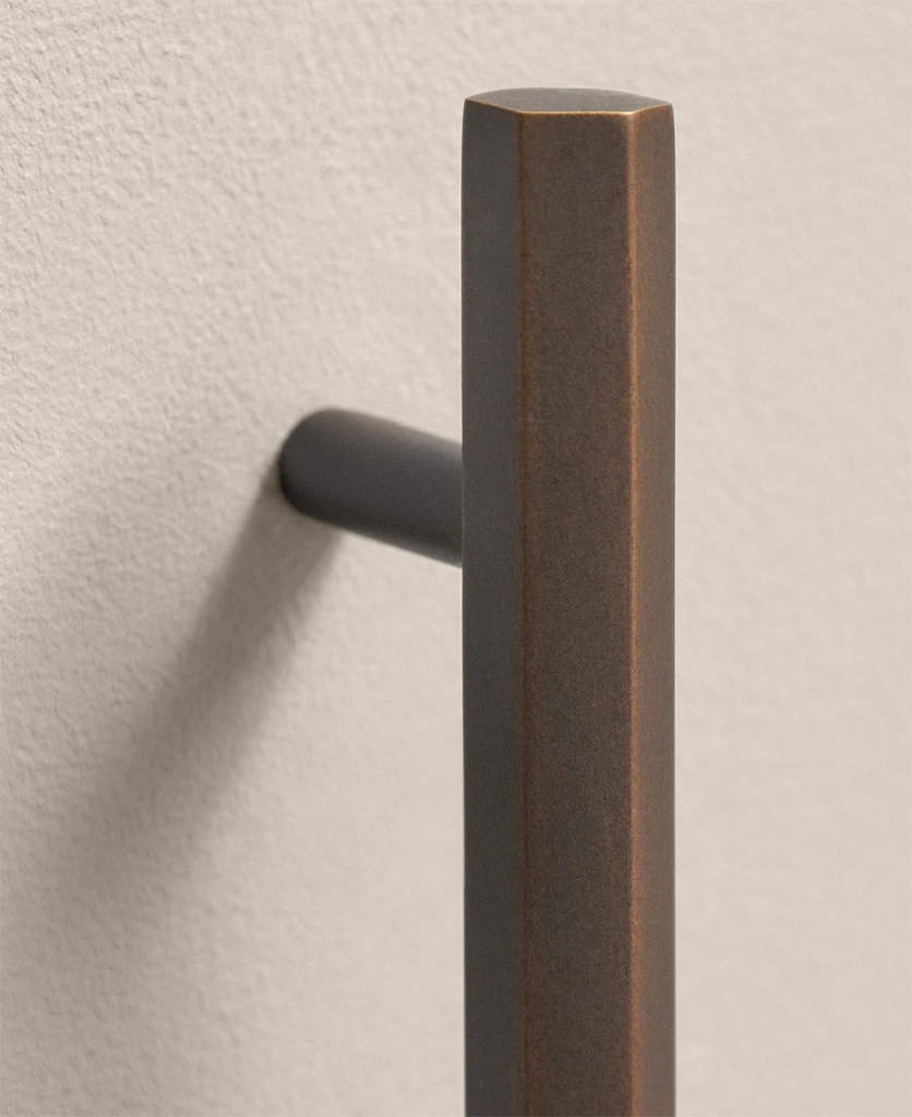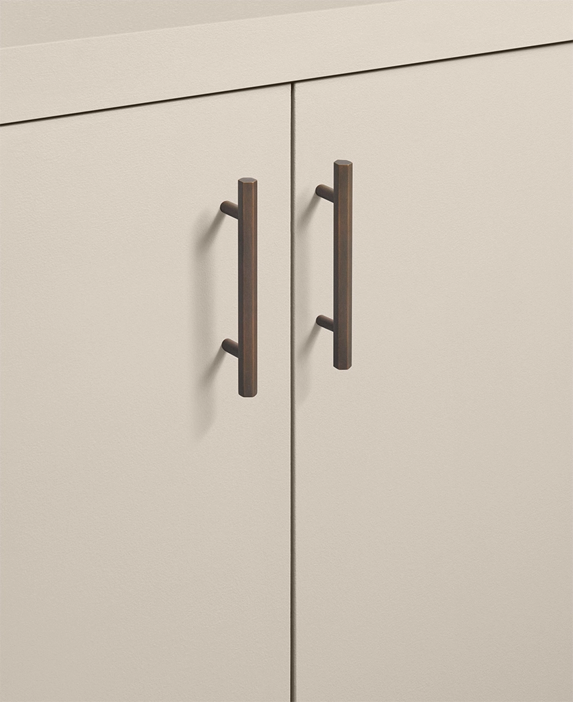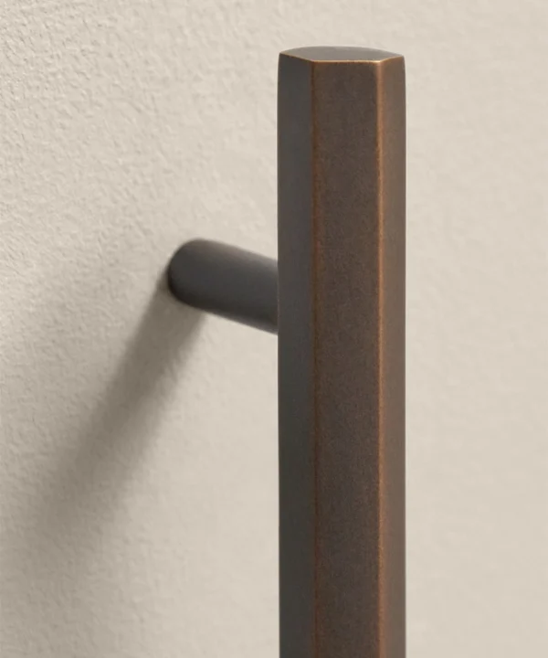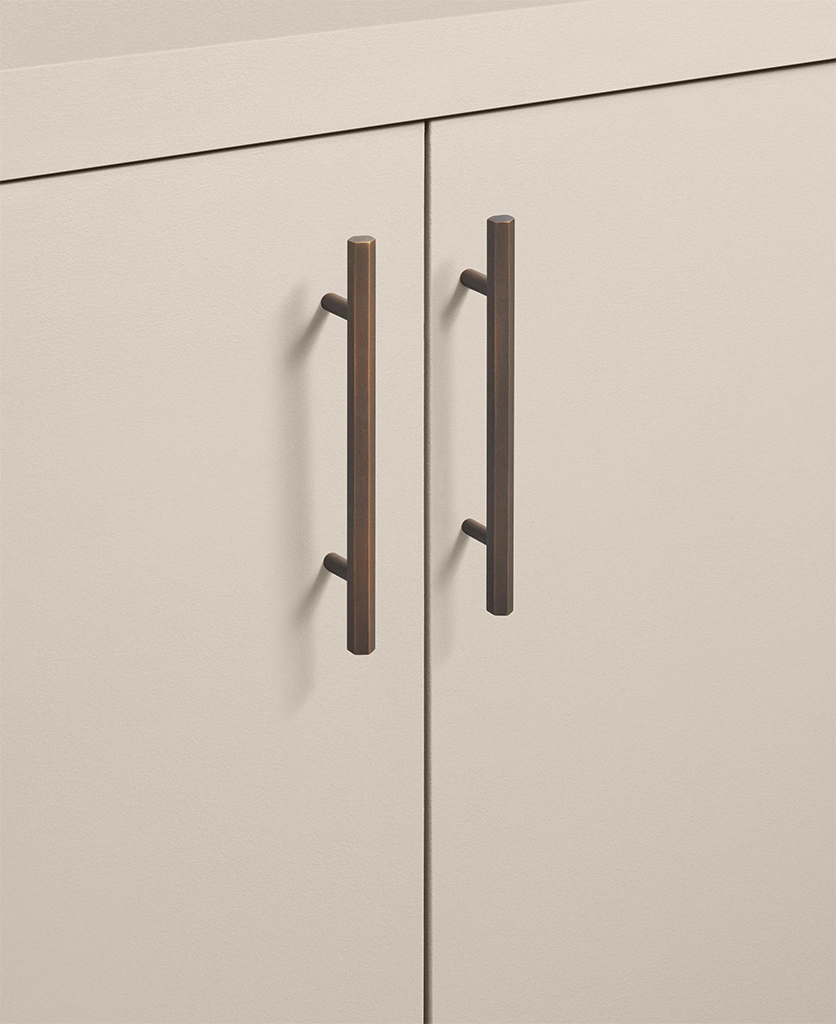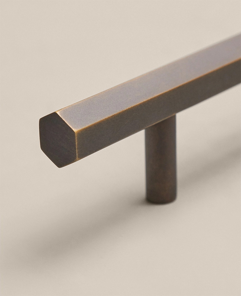 Sliding open a drawer, your hand meets the smooth, angular form of the Hive handle. Its distinctive hexagonal profile feels both strong and refined — a satisfying blend of precision engineering and subtle tactility. The bronze finish glows softly in natural light, shifting from rich gold to muted bronze as the day unfolds. It’s a handle designed to be noticed, but never to shout.