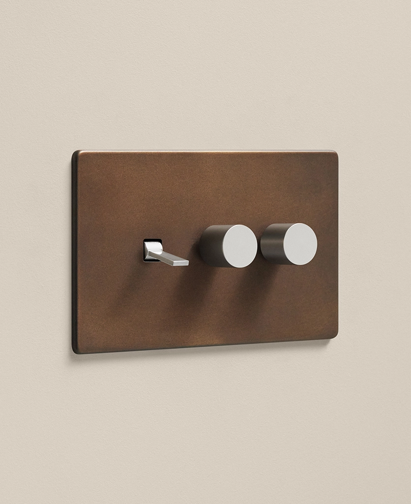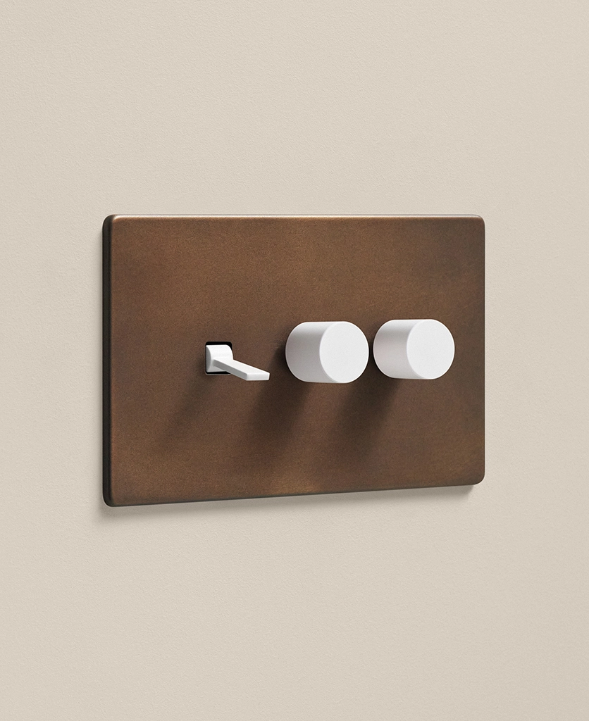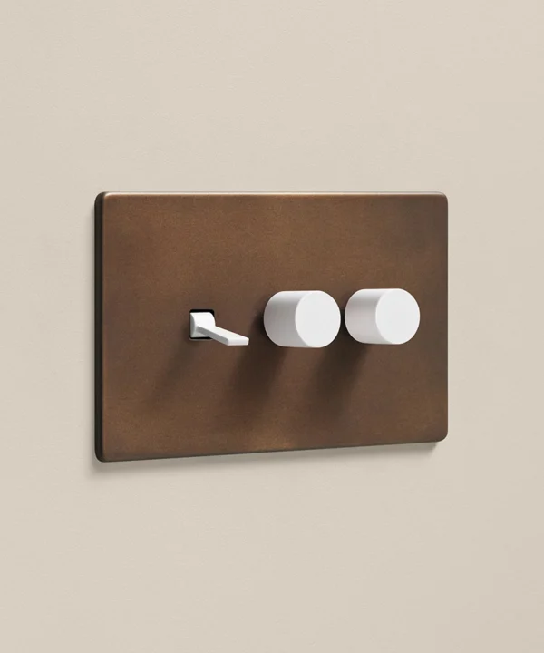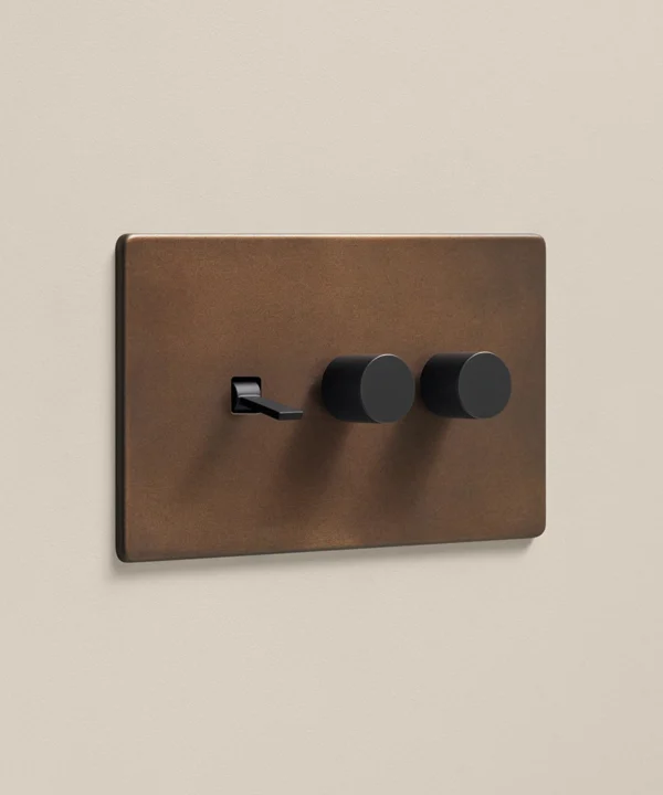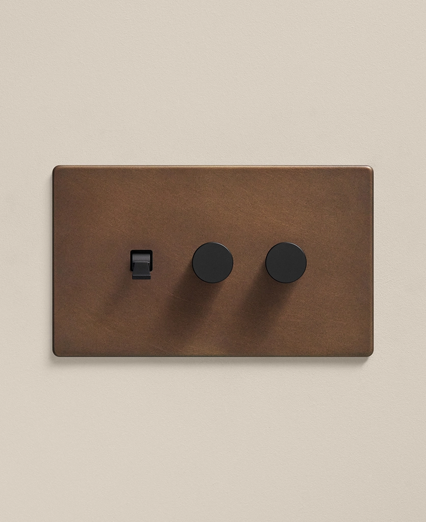 The bronze switches and sockets are perfect for anyone who values aesthetics and practicality. Whether you’re updating a modern open-plan dining space or creating a cosy living room, the combination of two dimmers and one toggle on the same light switch makes it easy to set the ambience, with a distressed metal finish that adds a classic touch to any décor scheme.