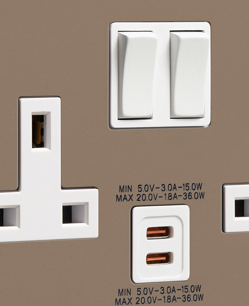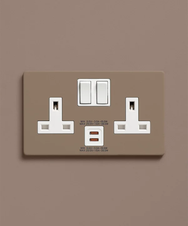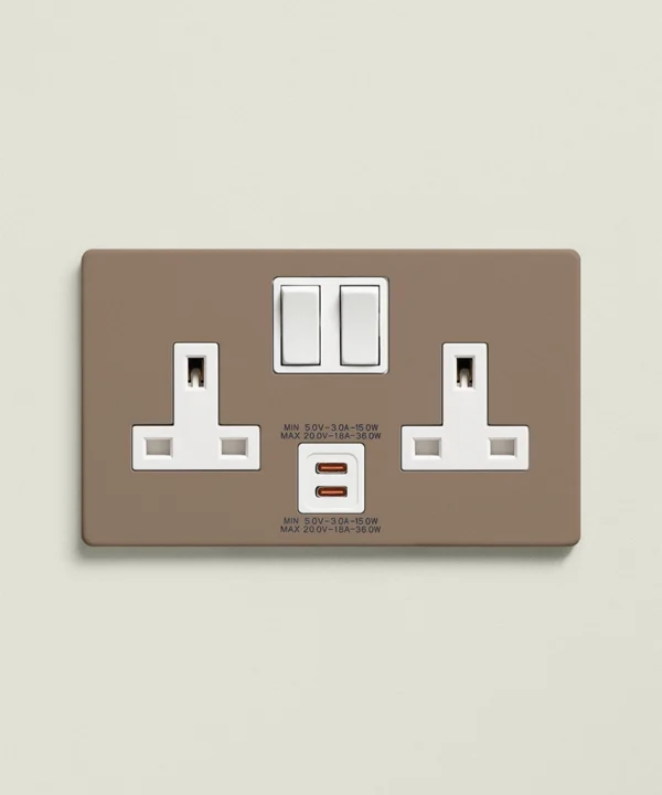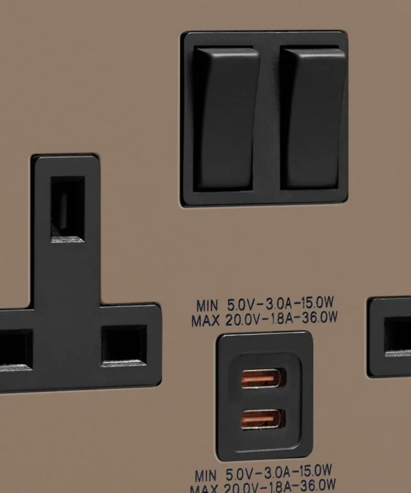Charging your phone directly from the USB-C port, you enjoy the ease of a socket designed for modern living. The Caramel Latte finish enriches your walls with its mellow tone, transforming a necessity into a design feature.