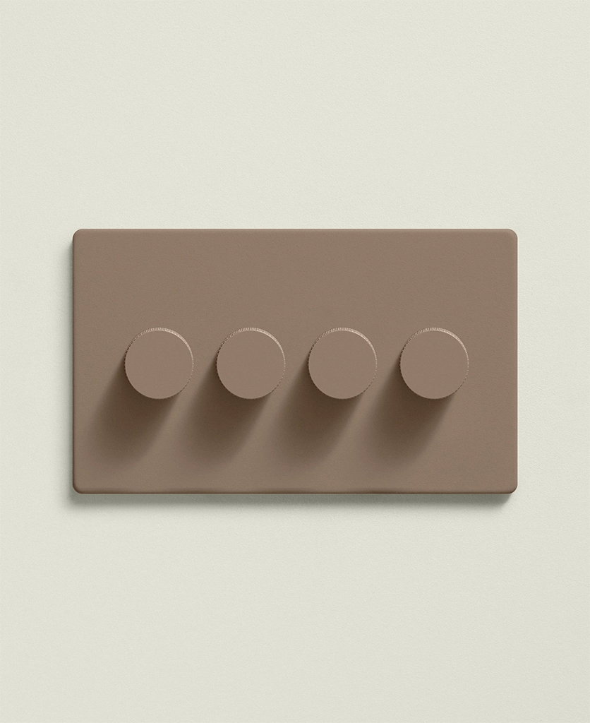 Adjusting four lighting zones with ease, you shift your kitchen to bright, keep the lounge softly glowing, dim the dining lights, and illuminate the hallway – all in moments. The Caramel Latte Quadruple Dimmer balances function with a warm-toned, design-led finish.
