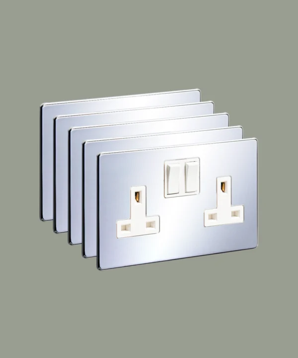 Home / Shop / Light Switches & Sockets / Silver Light Switches & Plug Sockets / Chrome double plug socket