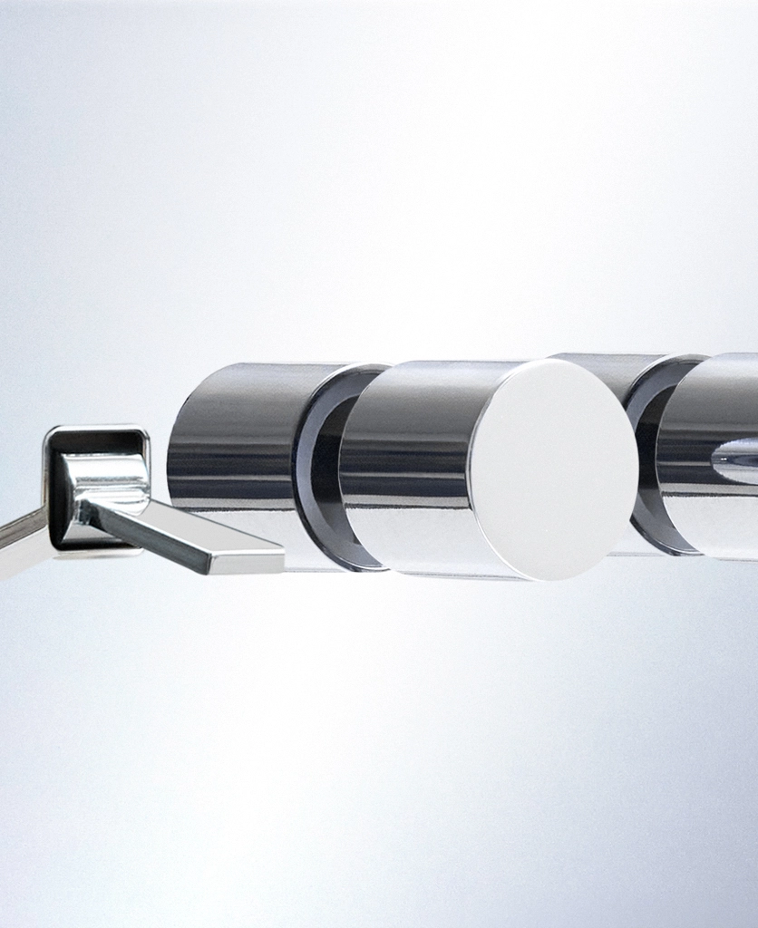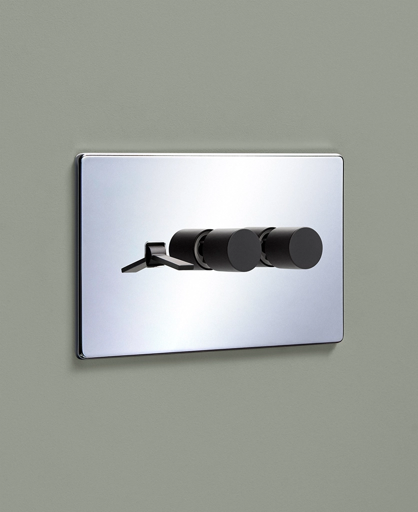 Stealing one last glimpse at your calming space, you reach for the chrome triple light switch beside the door. Pinching the tapered toggle between your thumb and finger, you pull it upwards, plunging your open-plan space into darkness.
