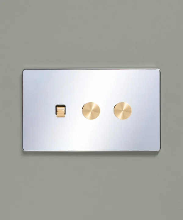 Home / Shop / Light Switches & Sockets / Silver Light Switches & Plug Sockets / Chrome triple combo switch (1 toggle, 2 dimmer)