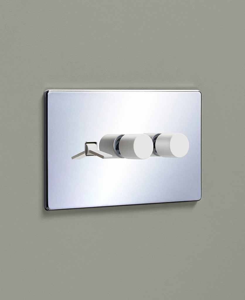 Glancing at the dimmer dials, you smile at the thought of returning home tonight. Having dimmers and toggles on one switch plate makes it so much easier to flick between task and ambient lighting, and you think of snuggling up on the sofa with a good book as soon as your workday ends.