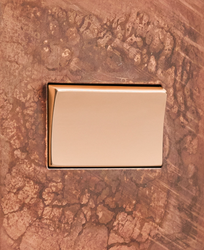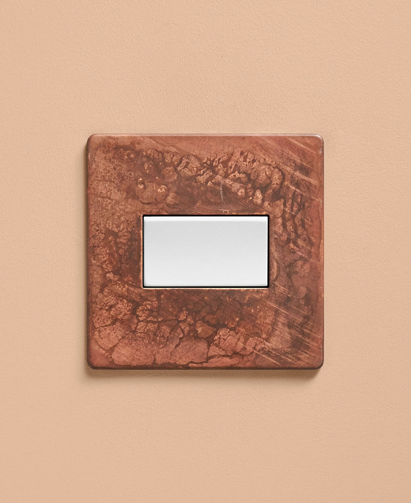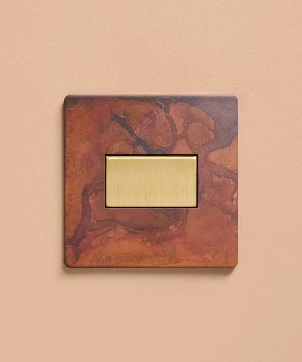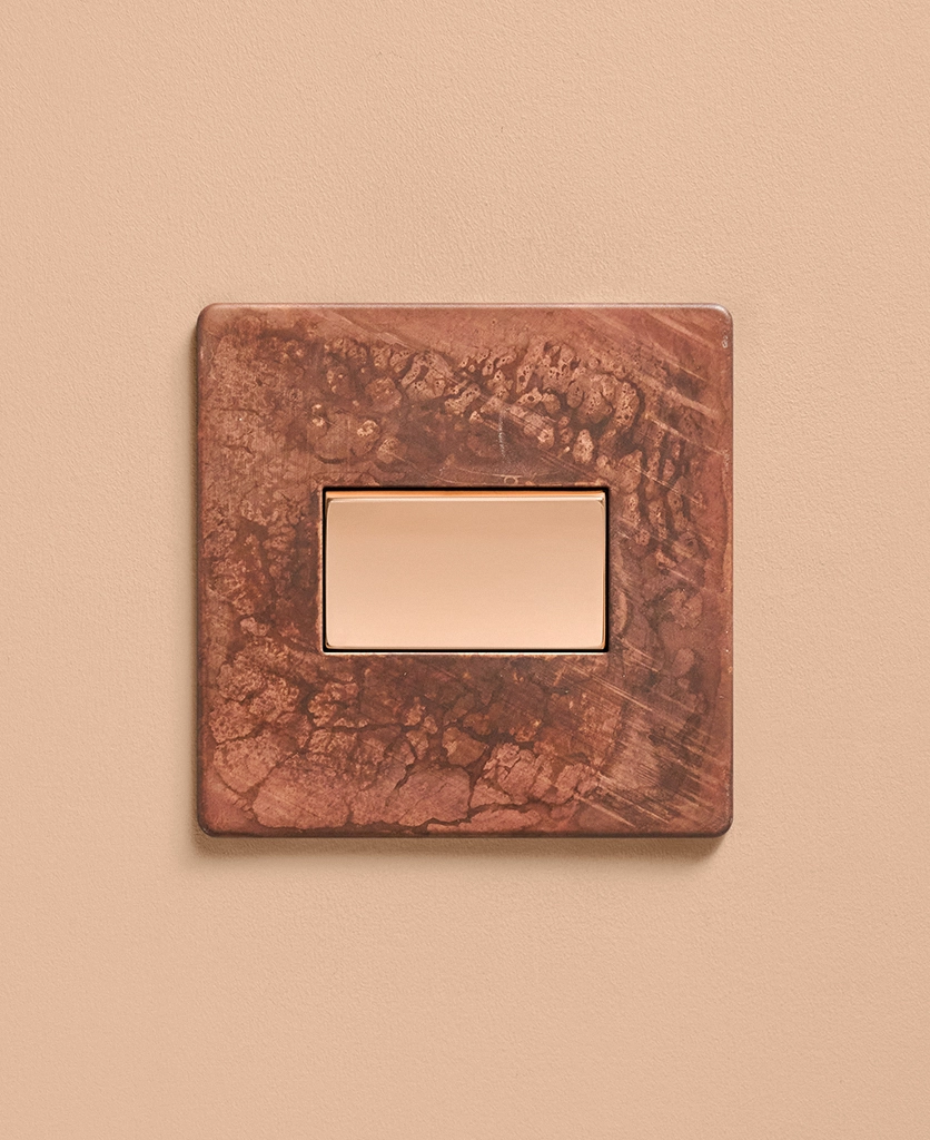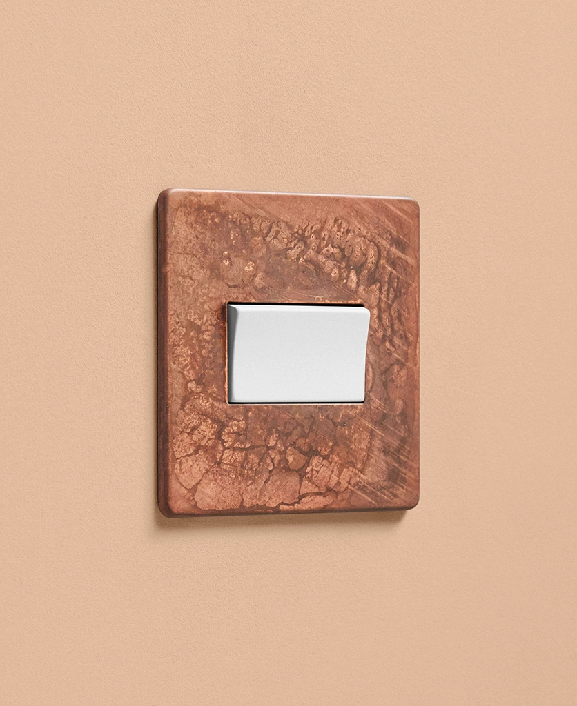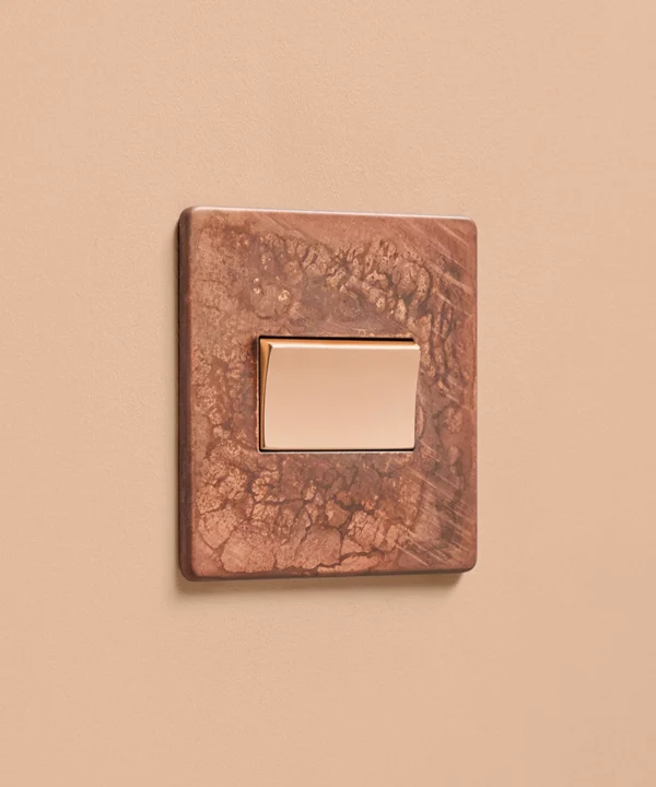 Oxide copper is a finish that adds a certain je ne sais quoi to your interiors. With a matt copper plate and unique hues of grey and blue swirling across the surface, this stunning oxide copper switch really packs a punch.
