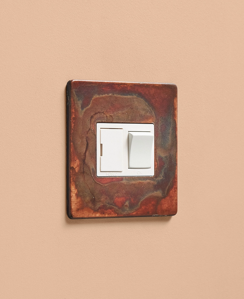 - Our oxide copper finish is made to change and age with wear, making each switch unique, differing from batch to batch. We strongly advise ordering items for the same room together to ensure consistency. If fitted to freshly plastered walls, there is a chance the dampness will encourage the finish of this switch to corrode.