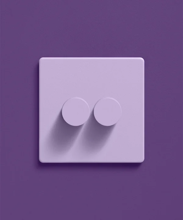 Use this double dimmer in a combined kitchen‑diner to manage overheads and task lighting or in a bedroom to balance pendant and bedside lamps. Its pastel purple finish works beautifully against warm neutrals, rich jewel tones or even a statement wallpaper. For those embracing the dopamine décor trend, where small hits of colour and texture create uplifting environments, it’s an easy way to add personality without overpowering the room. Let it complement colourful cushions, art prints or a statement armchair to create a cohesive scheme.