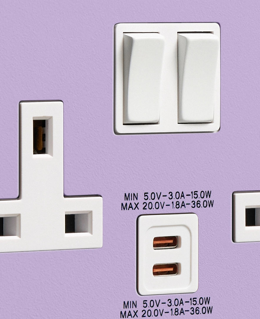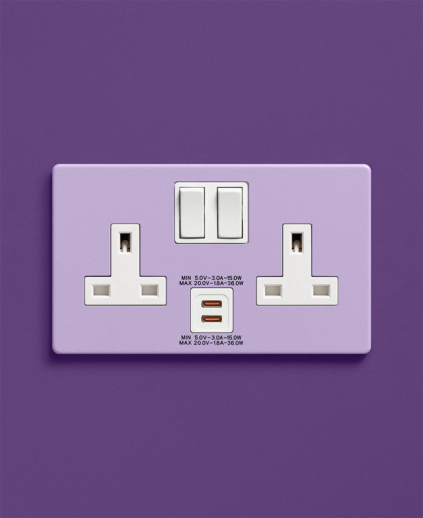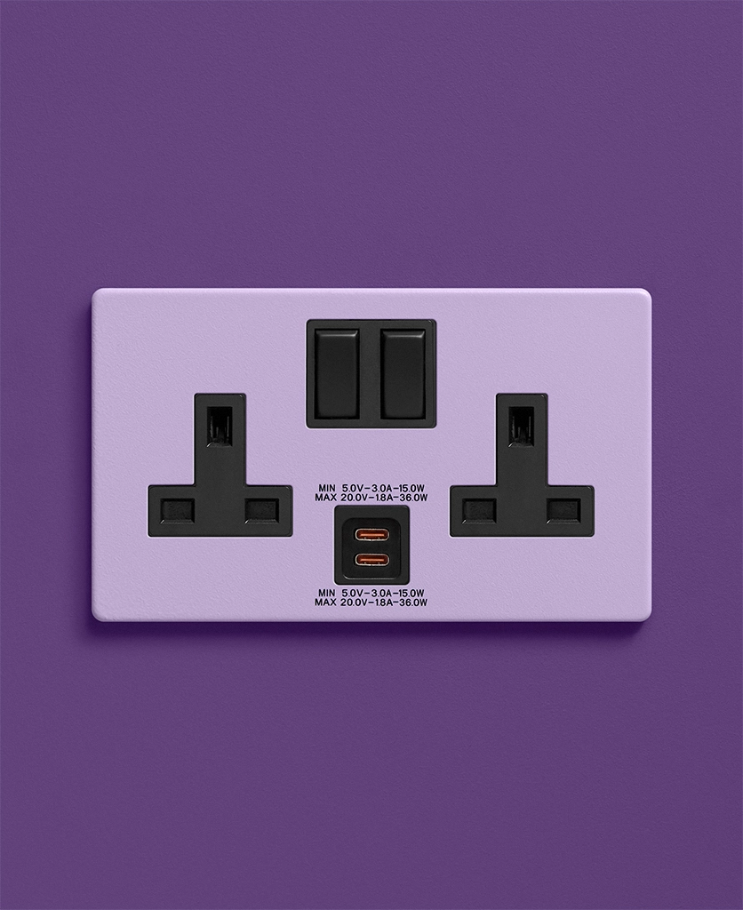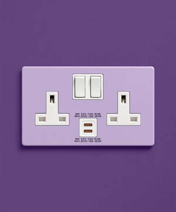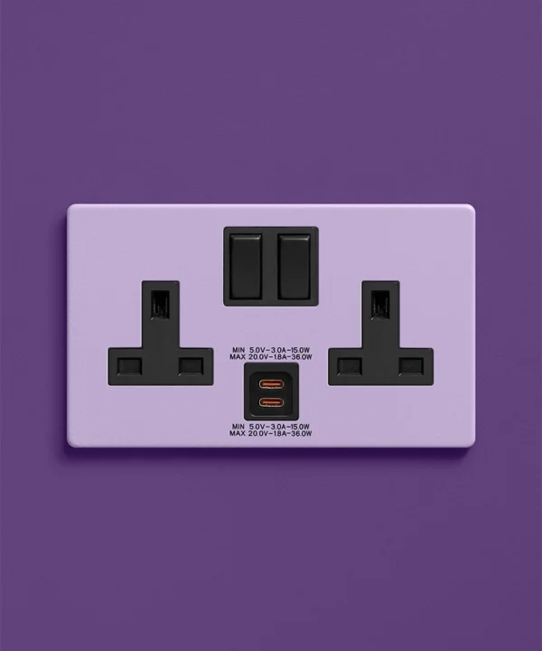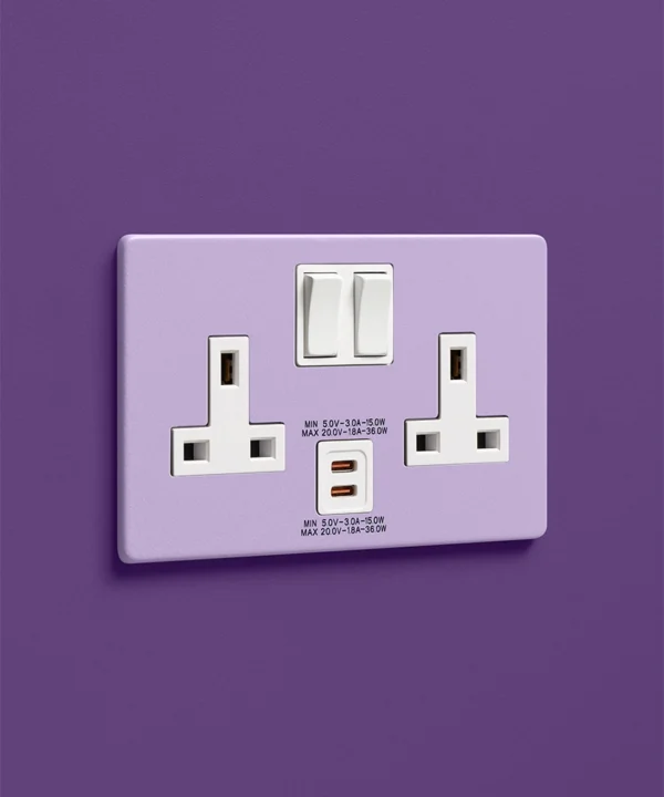 Home / Shop / Light Switches & Sockets / Colour Pop Switches & Sockets / Digital Lavender double socket with USB-C