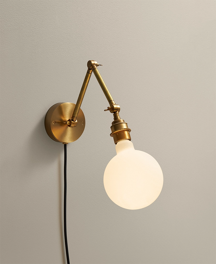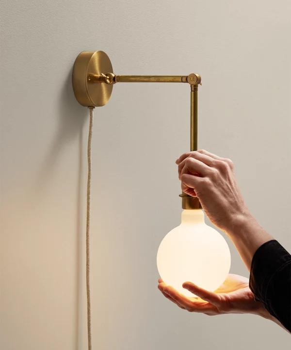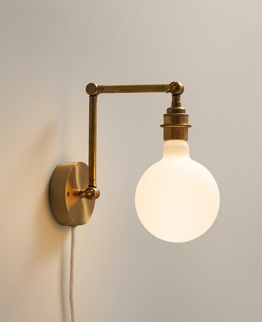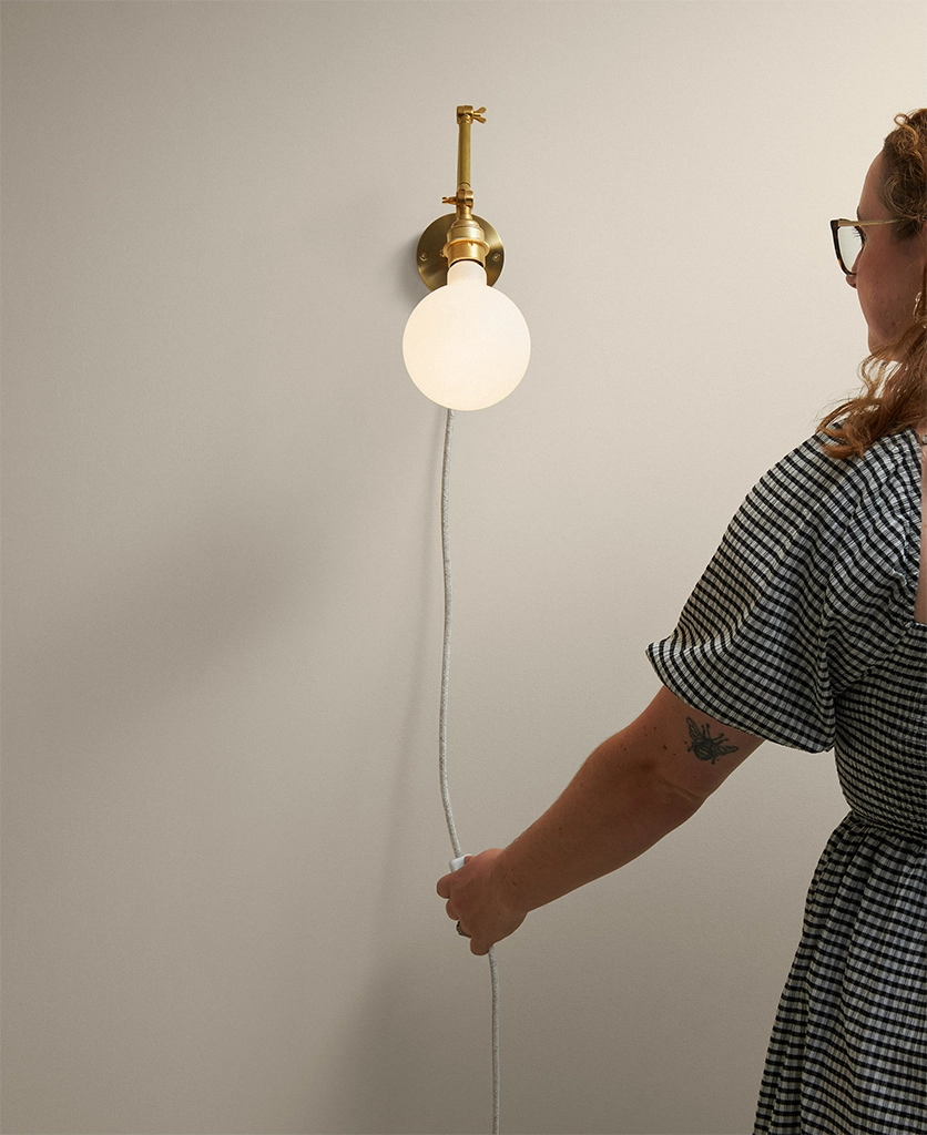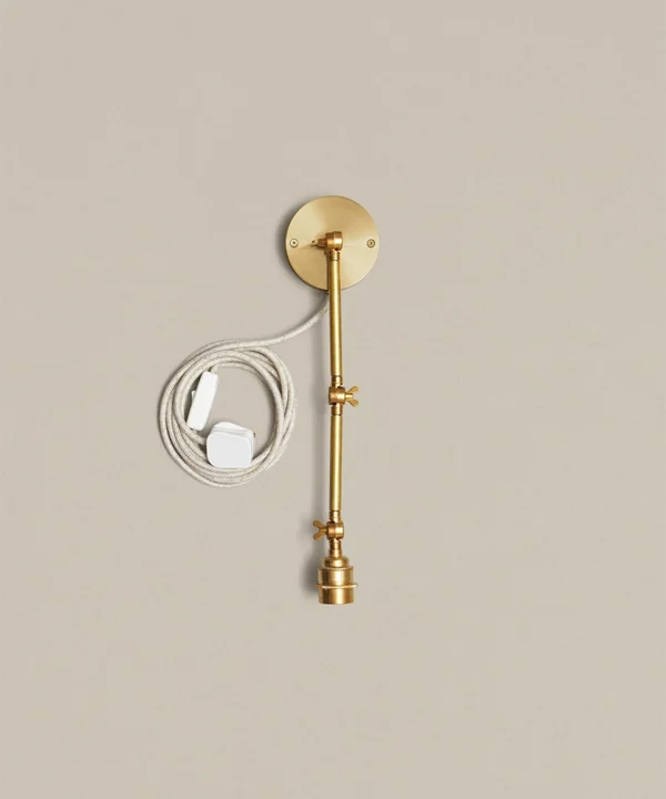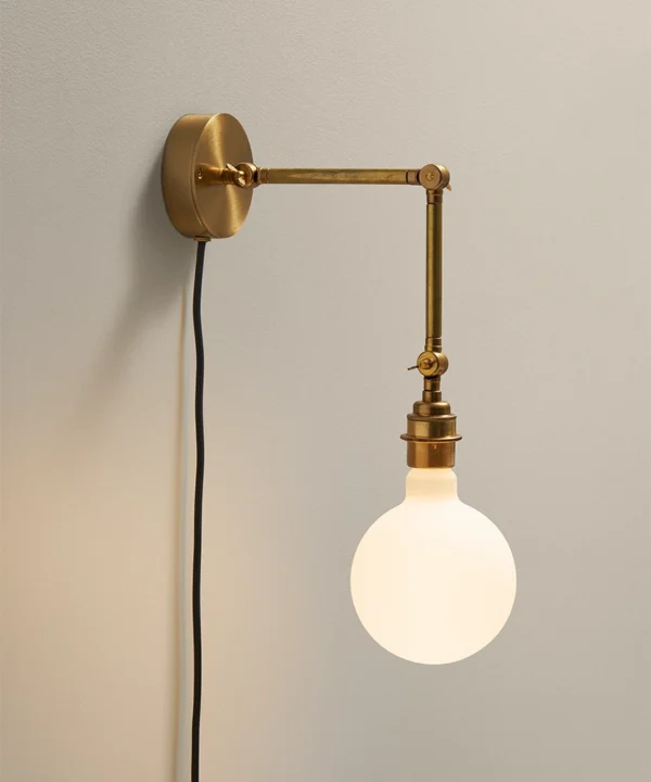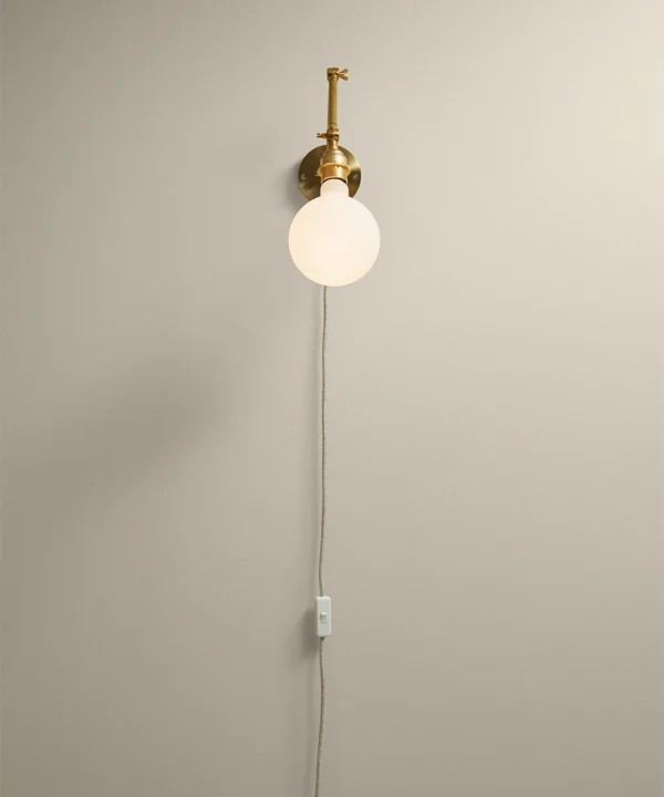 Leaning back into your armchair, a soft, golden glow spills across the pages of your book. The warmth pools gently around you, cocooning your evening in quiet calm. There’s a distinct sense of theatre in the way this plug in wall light hangs from its brass fixings—exposed bulb aglow like a retro film set prop. Switched on with a flick of the in-line rocker, it feels satisfyingly analogue. Purposeful. Stylish without trying.