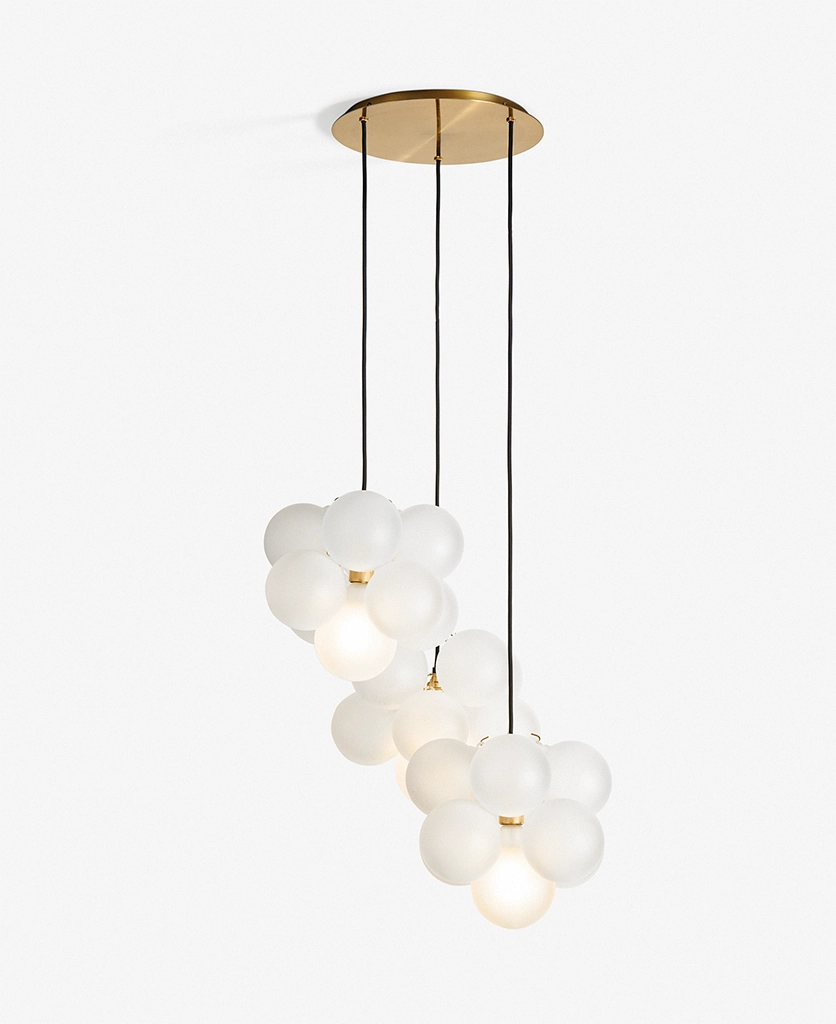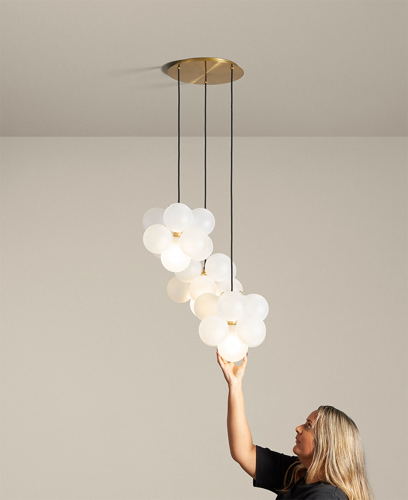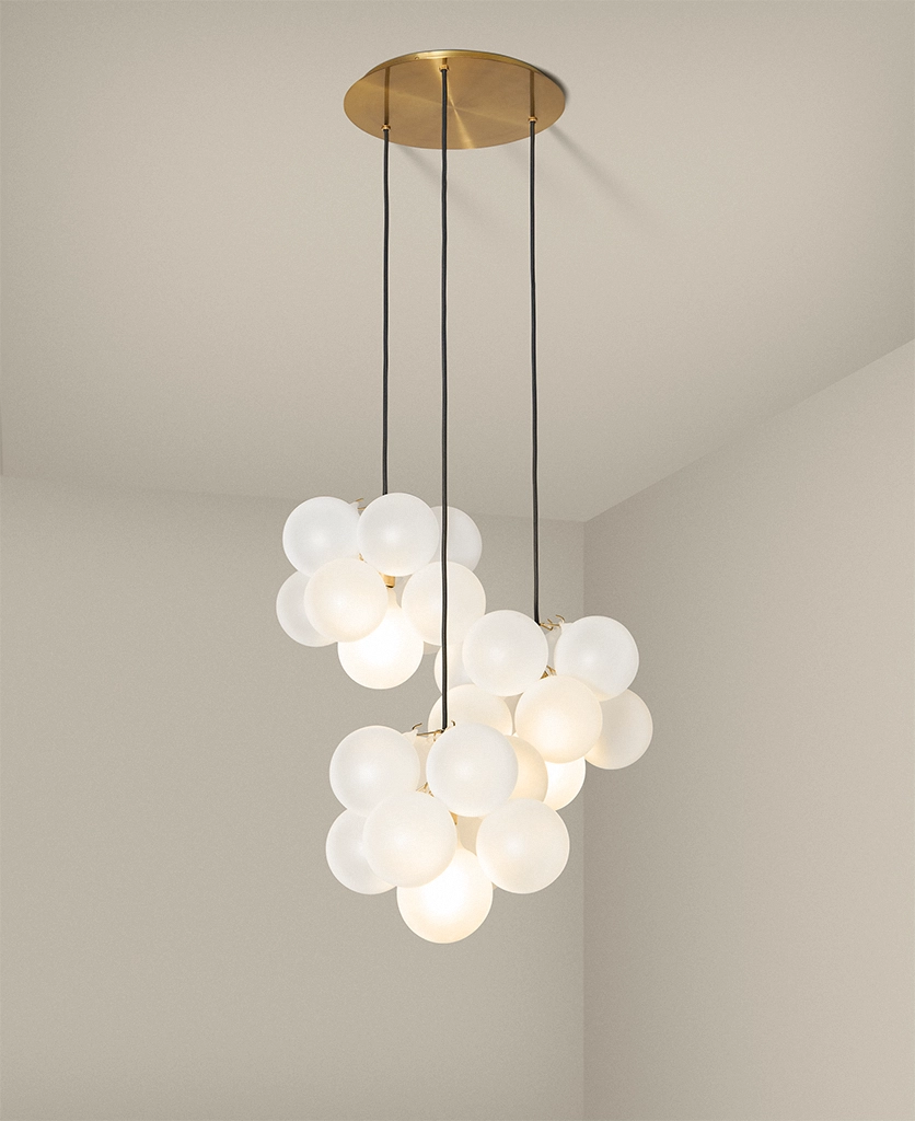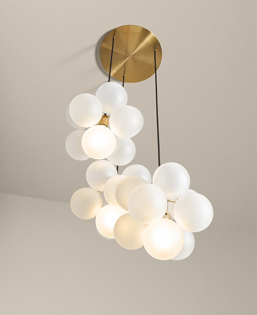- Adding soft, ambient lighting through clusters of frosted glass orbs