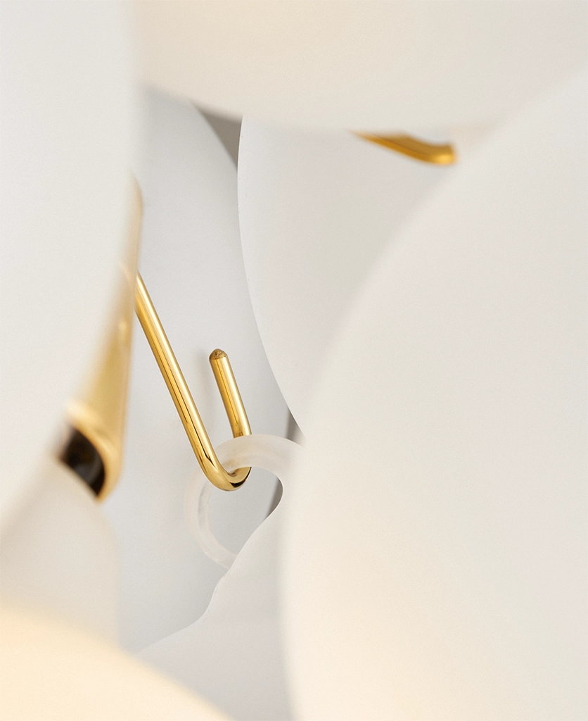 Perfect for stairwells, entrance halls, or open-plan living spaces, this feature lighting brings warmth and sophistication to any setting. The gold hardware pairs beautifully with rich woods, muted neutrals, or monochrome palettes, giving your home a curated, designer feel. The black or linen fabric cable options let you fine-tune the final look, whether you lean towards crisp contrast or understated elegance.