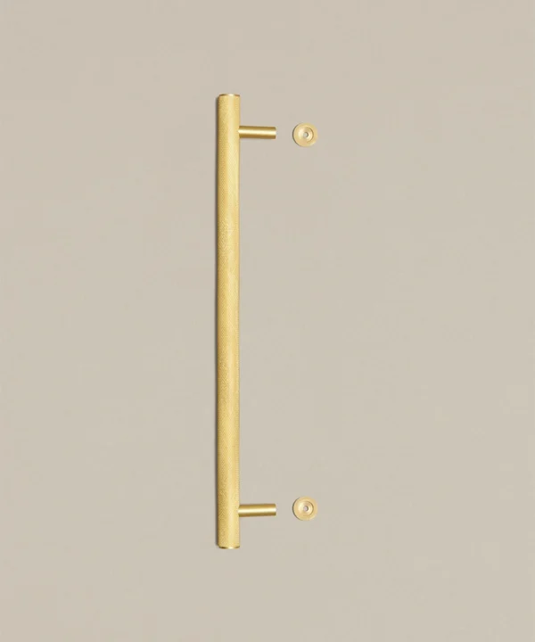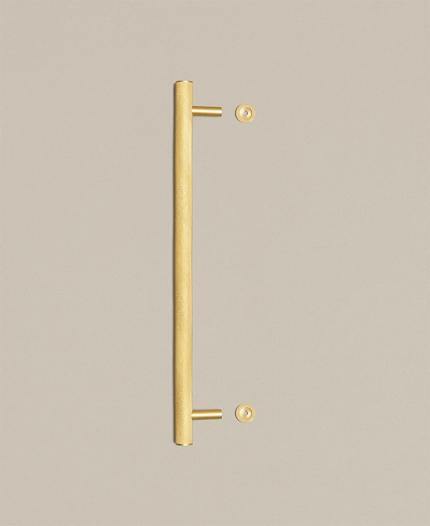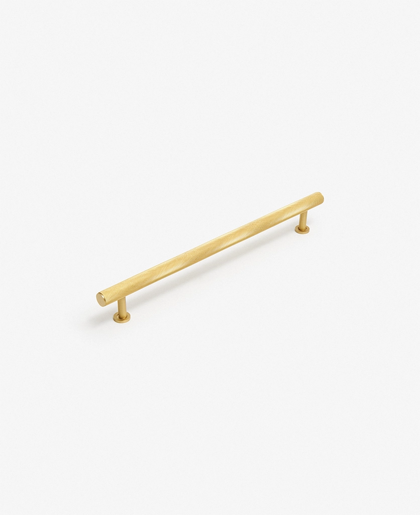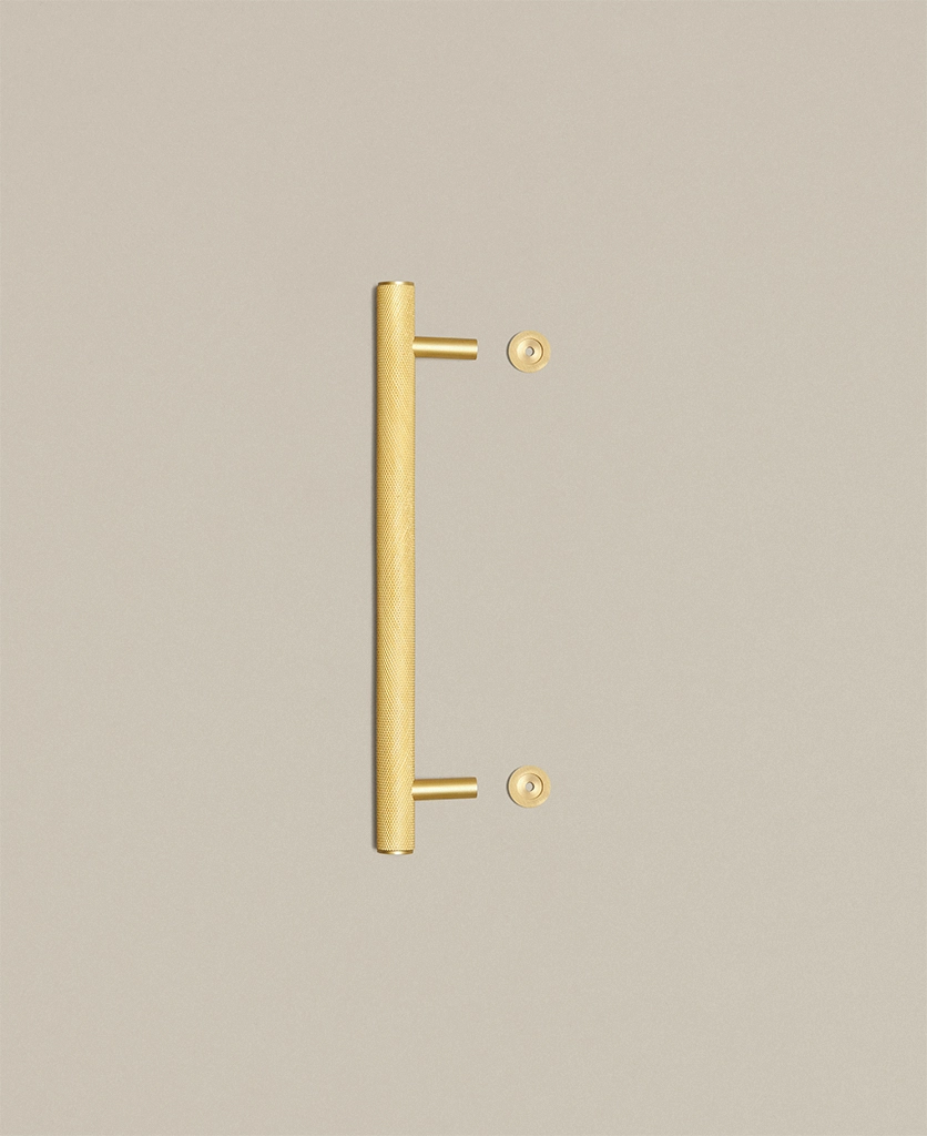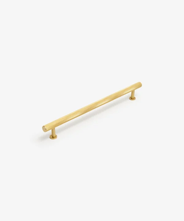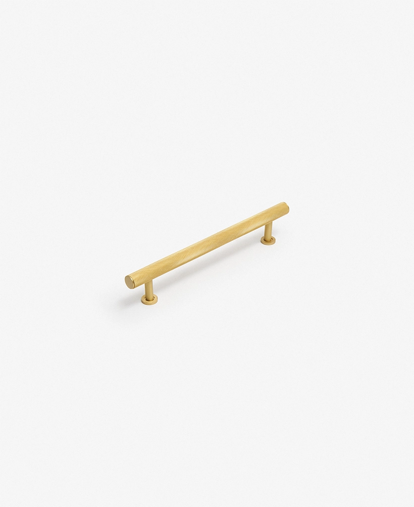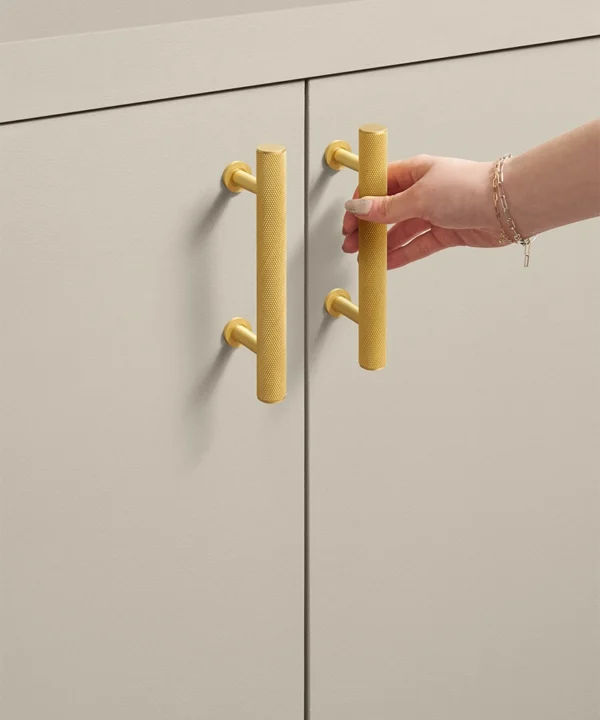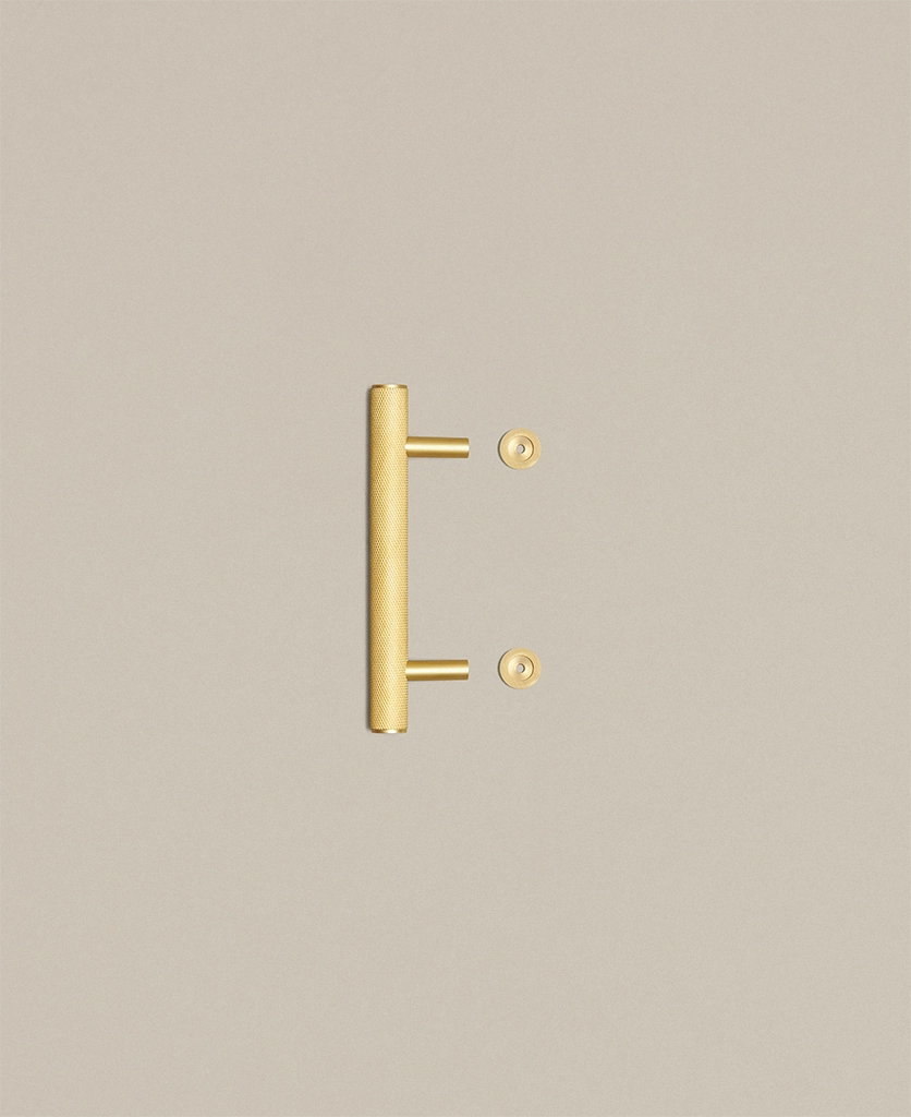 Closing a drawer, you feel the reassuring grip of finely knurled metal beneath your hand. The pattern catches the light softly, giving the gold finish a warmth that feels considered rather than showy. It’s a small interaction, but one that quietly elevates the everyday.